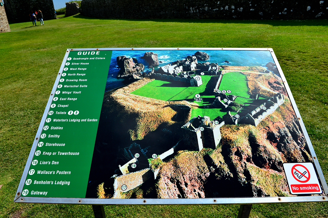 거의 모든 건물이 벽체만 남아 있는 던노타 캐슬의 각 건물에 대한 안내도다.