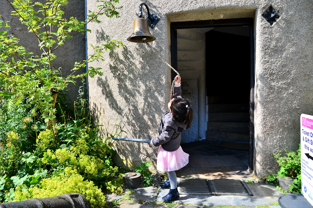 성 입구에 자그마한 종이 매달려 있다.
