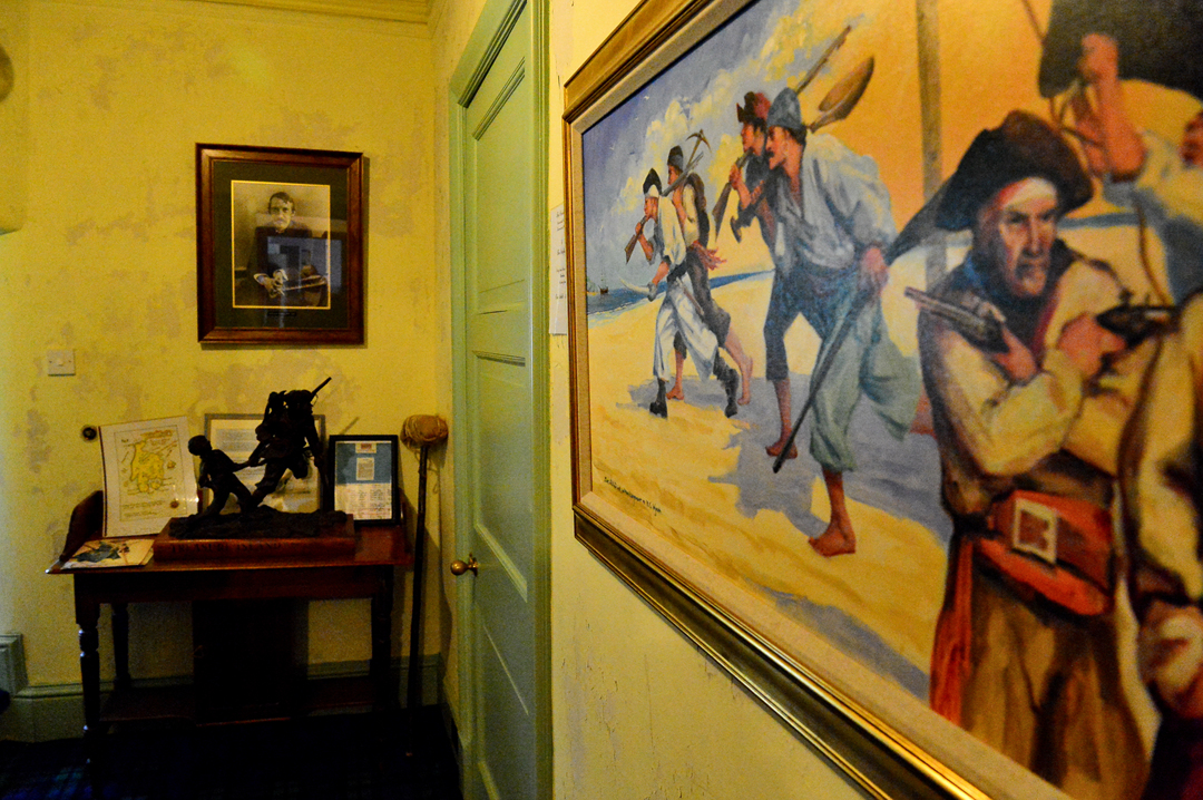리셉션 바로 옆에 있는 수문장인 듯한 인물이 있는 좁은 방의 벽에는 창들이 진열되어 있고