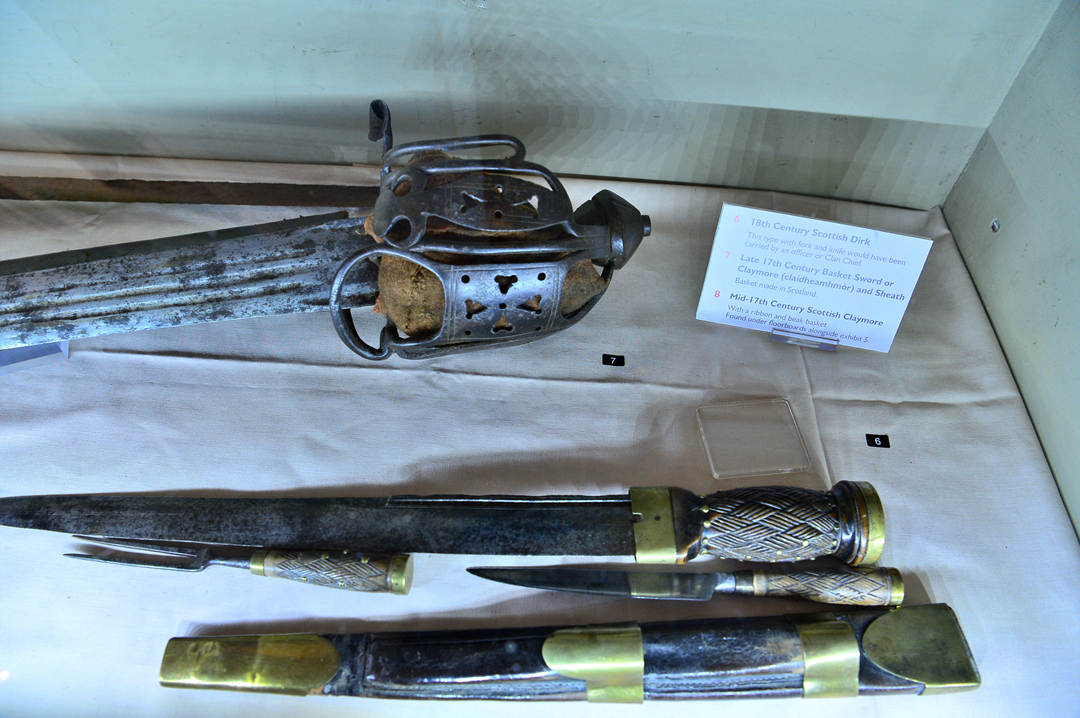 전시되어 있는 무기와 하일랜드인의 복장 모습이다.