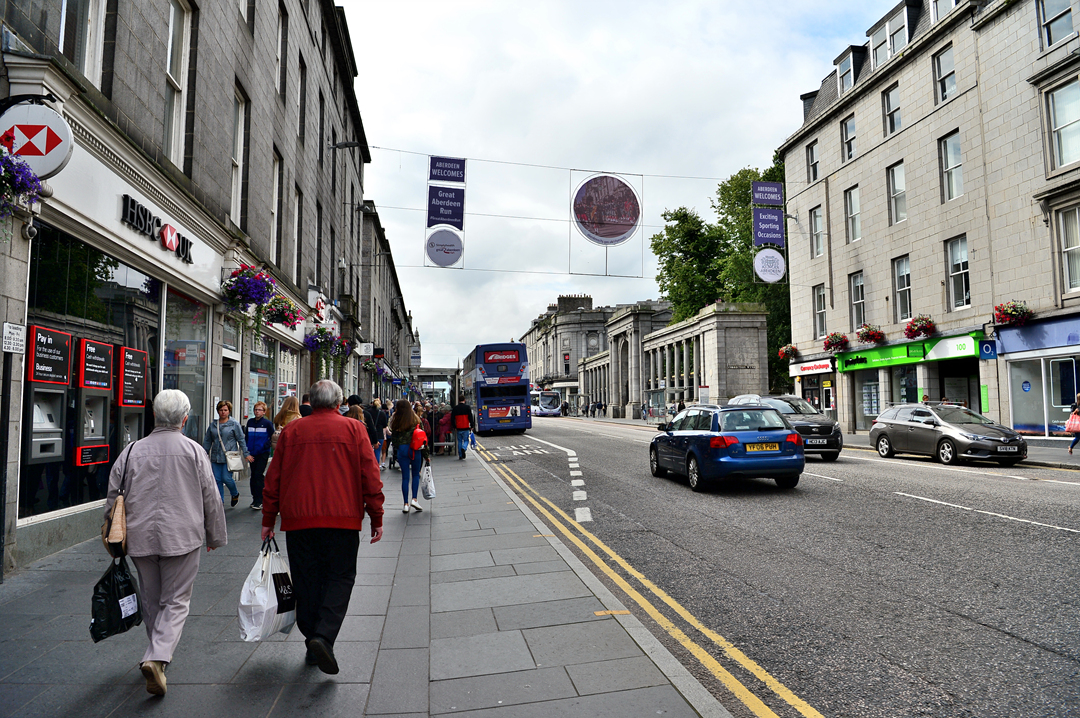 아버딘의 대표적인 거리인 만큼 항상 붐비는 이 도로 양옆으로는