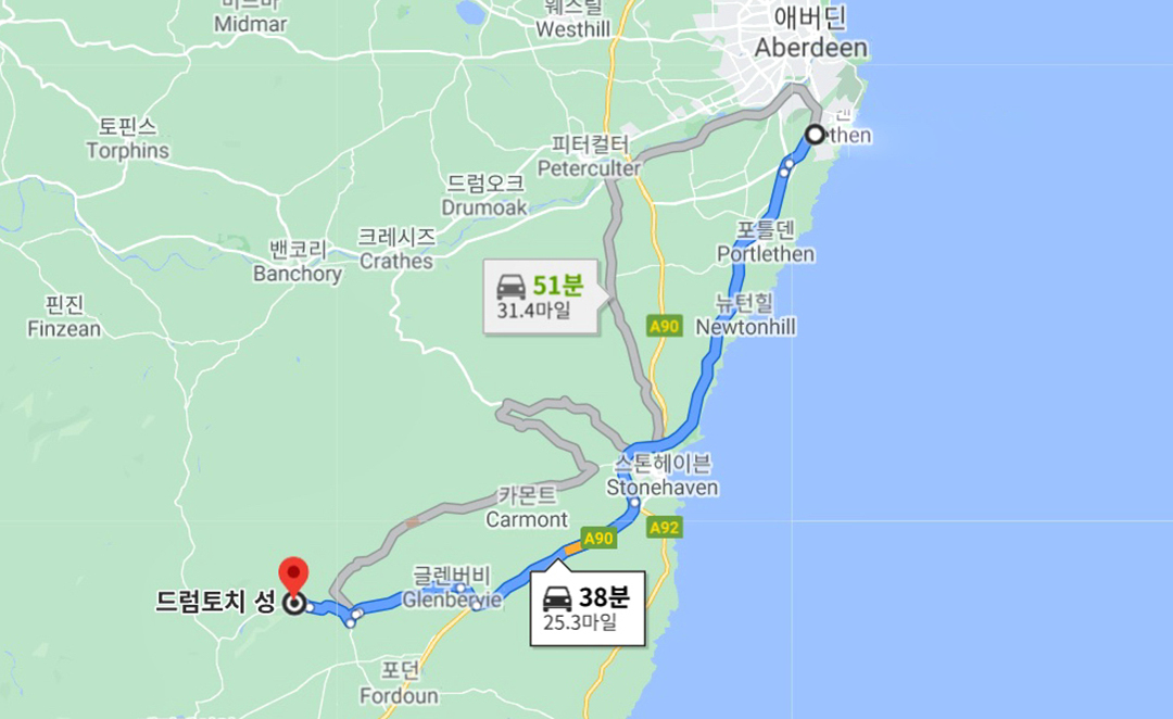 아버딘에서 약 40여 분 떨어진 조용한 시골에 위치하고 있다.