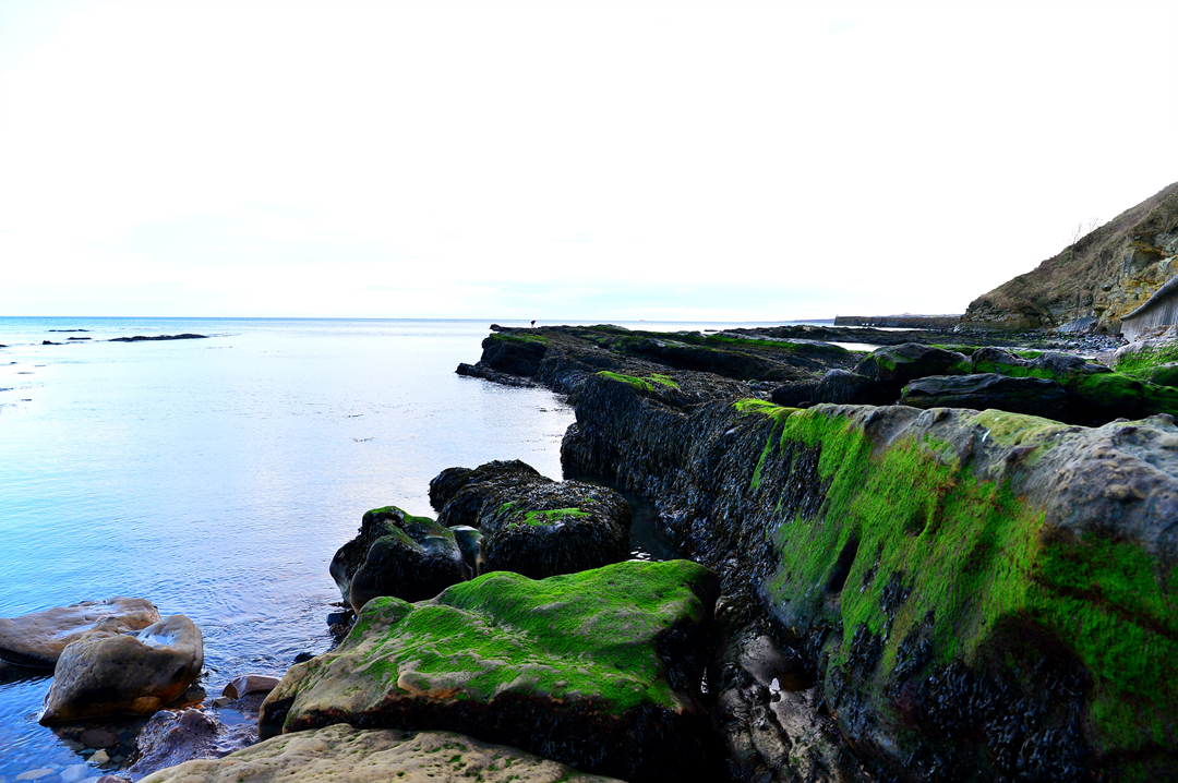 거친 바위들로 이루어진 해변 모습이다.