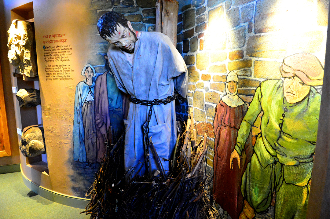 성벽 앞에서 화형시켰고, 이에 격분한 조지 위샤트의 동료들은 추기경이 머물고 있던 성 안으로 몰래 잠입해