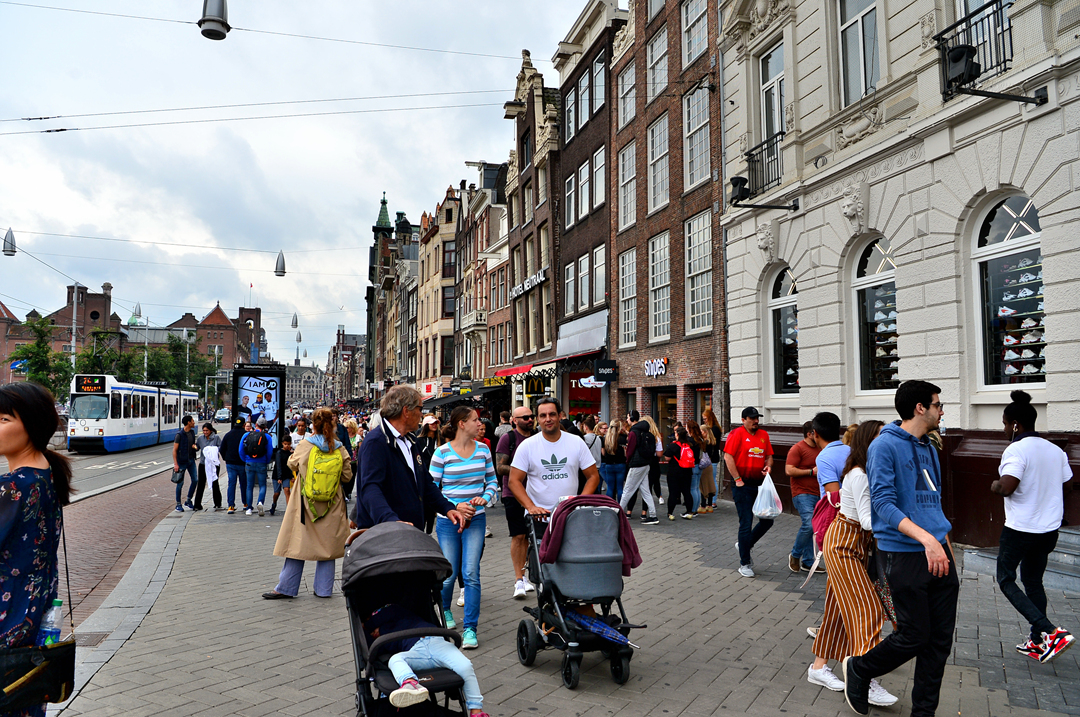 암스테르담의 메인 도로로 꼽히는 이 담락 거리는 도로의 폭이 무척 넓고 보도도 넓은데,