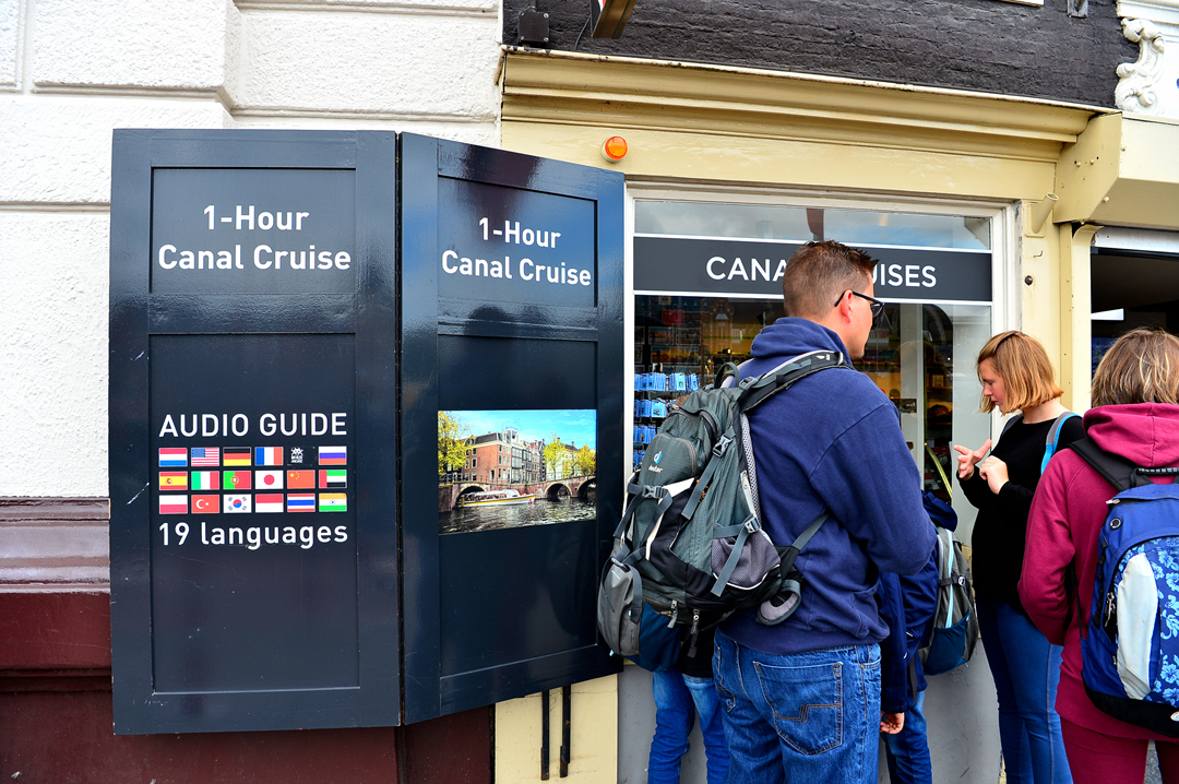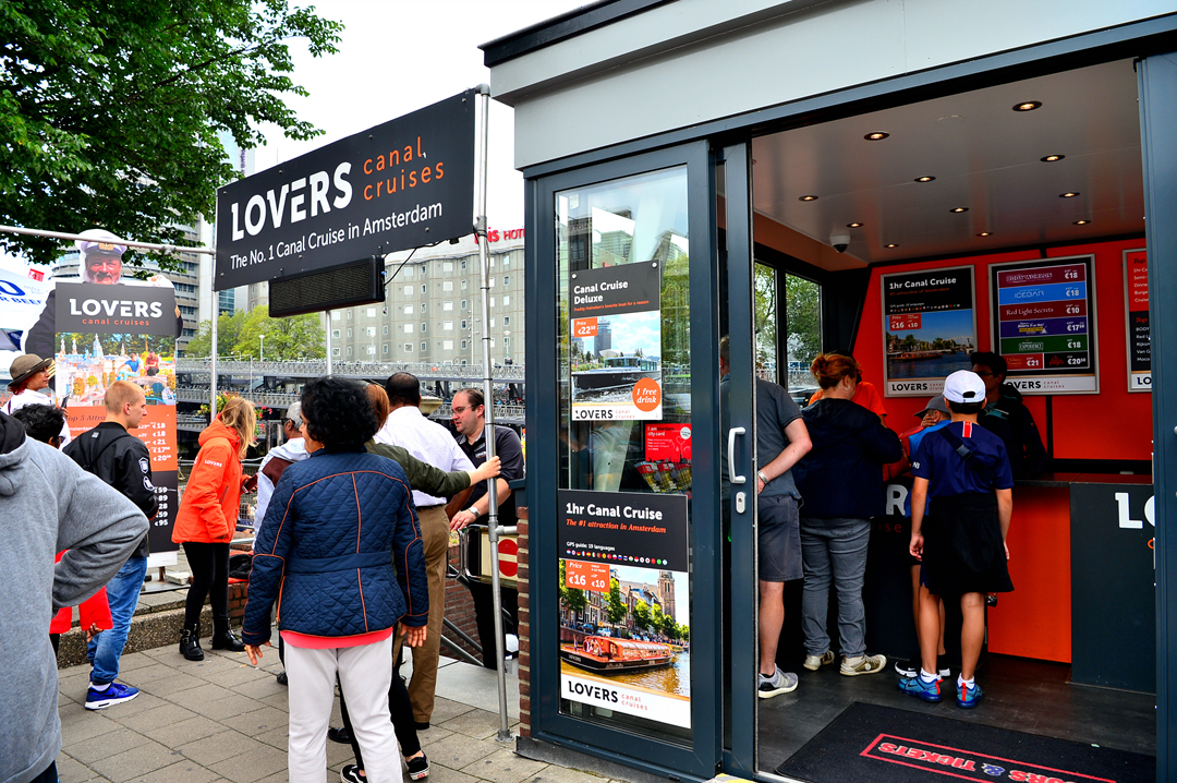 1시간 동안에 돌아보는 운하 크루즈 앞에 길게 줄이 이어져 있다.
