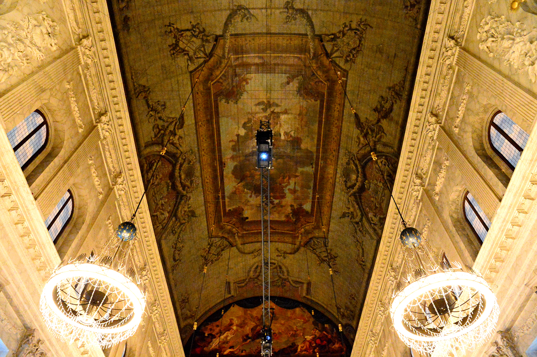 둥근 천장에 매달린 화려한 등기구가 아름답다.