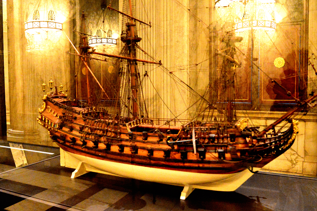 복도에 섬세하고 아름답게 만들어진 범선 모형도 전시해 놓았다.