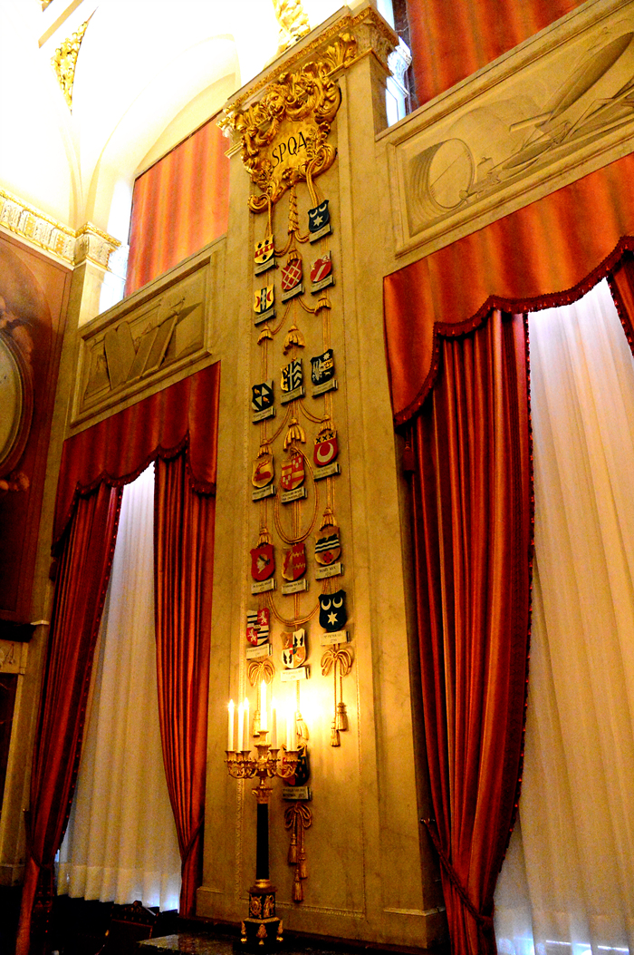 다양한 가문의 휘장도 한쪽 벽면에 걸려 있었다.