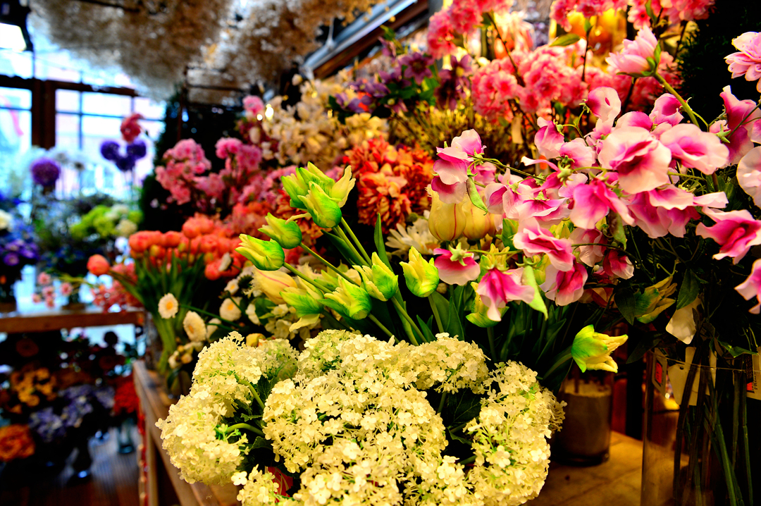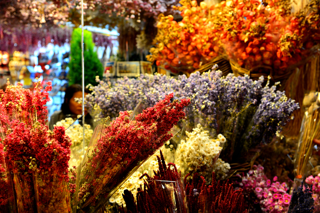 줄지어 이어지는 꽃 시장의 상점들을 돌아본다.