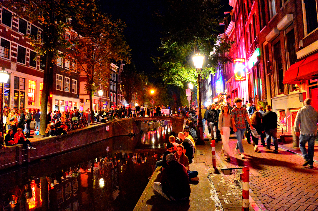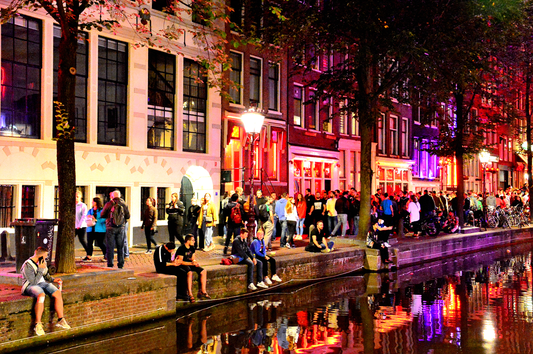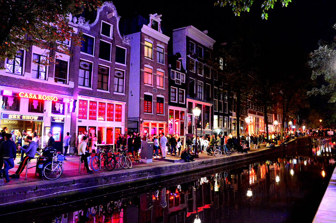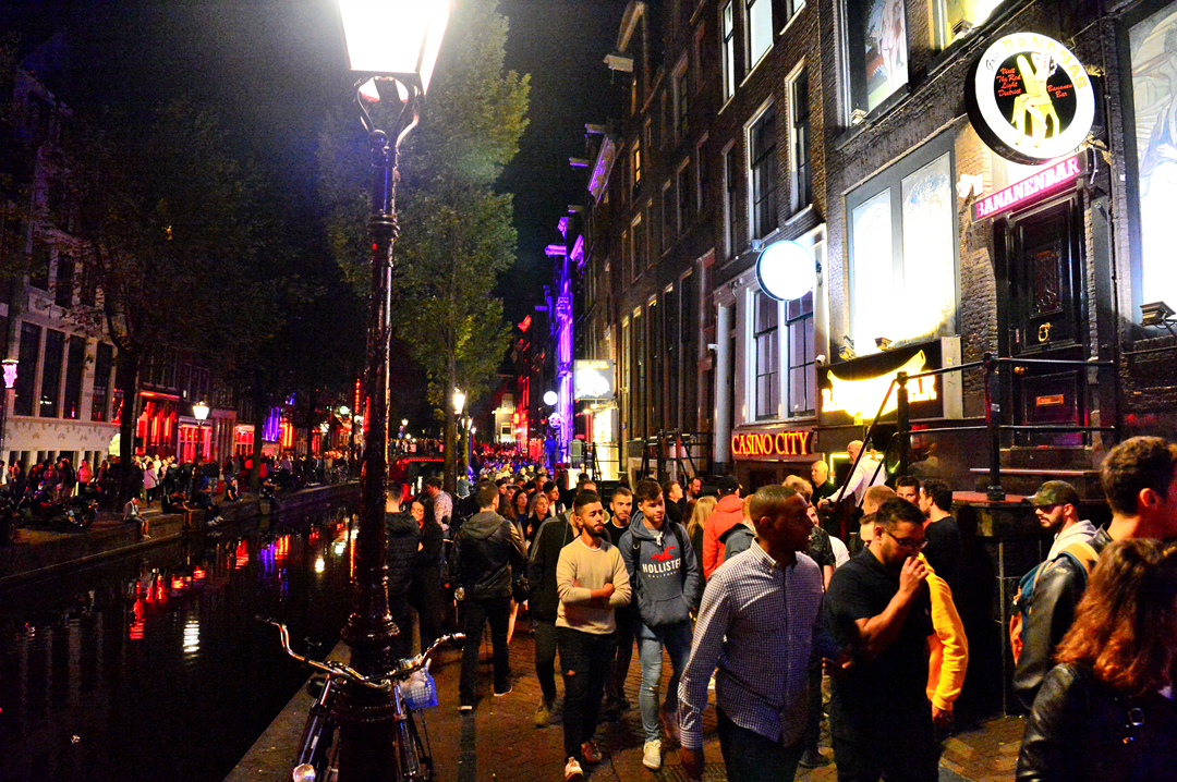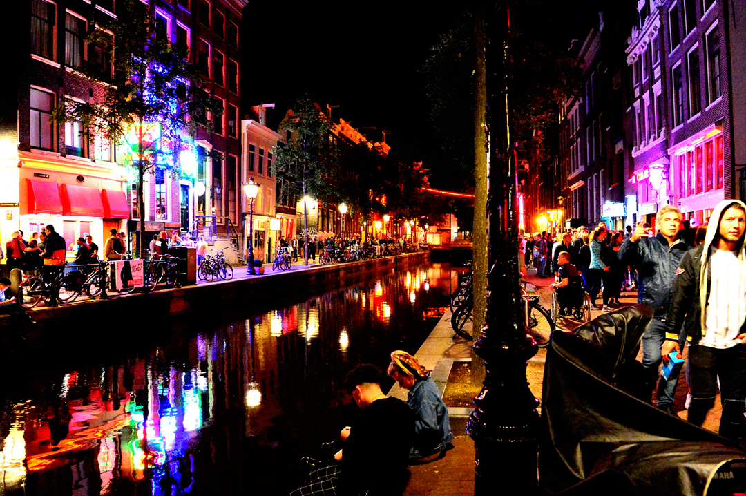 암스테르담 홍등가 Red Light District의 밤 풍경이다.
