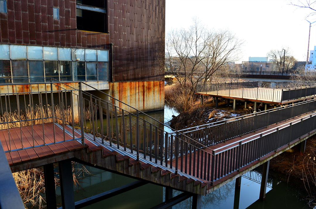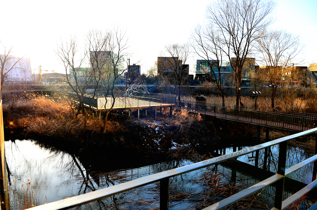 연못도 있고 연못을 가로지르면 도로로 나설 수도 있도록 계획되어 있다.