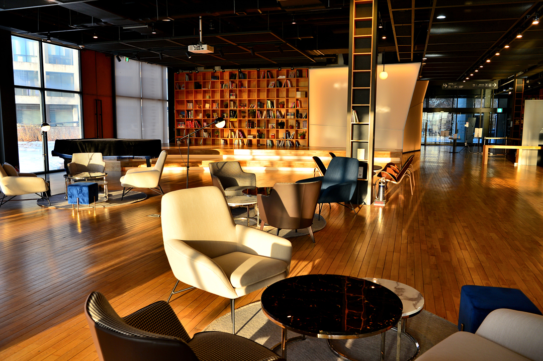 지혜의 숲 3관 모습으로 피아노도 있고 작은 무대도 마련되어 있는데,