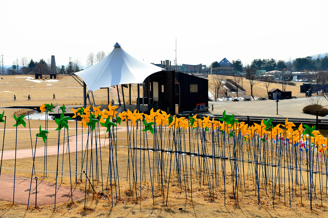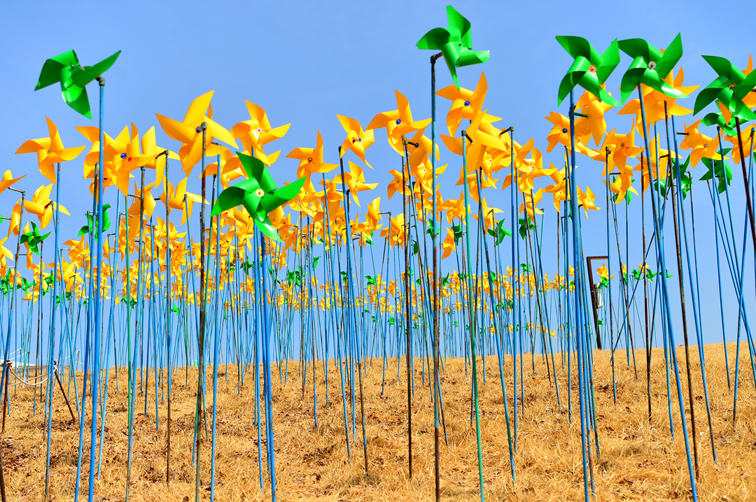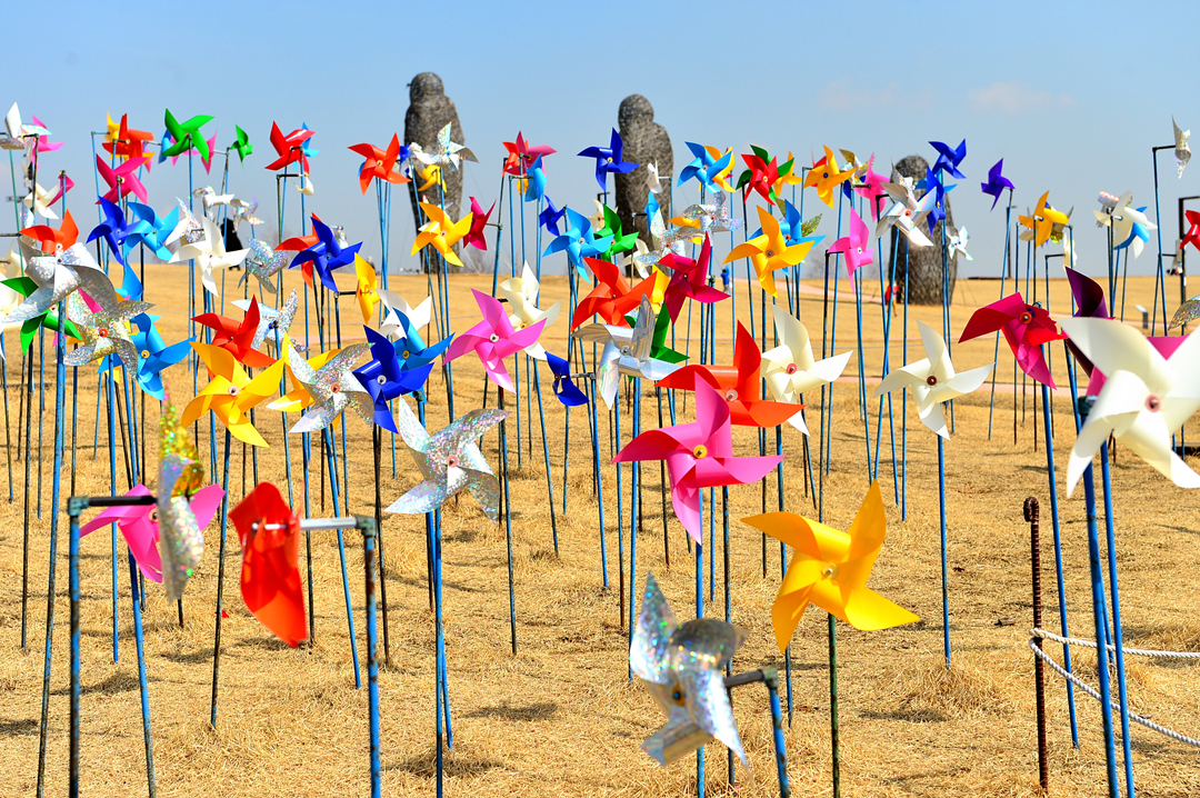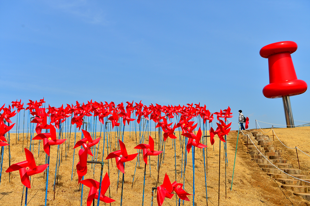 언덕에 설치되어 있는 수많은 바람개비~