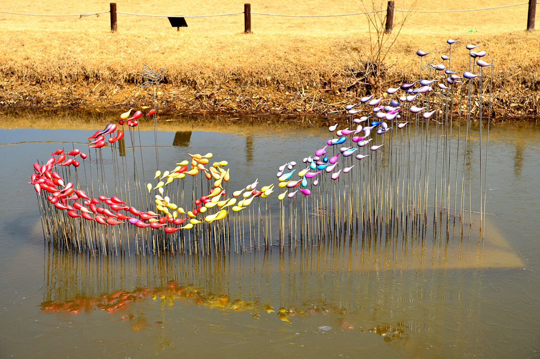 연못에 설치된 작품인데 작품명이 태양의 무지개란다.