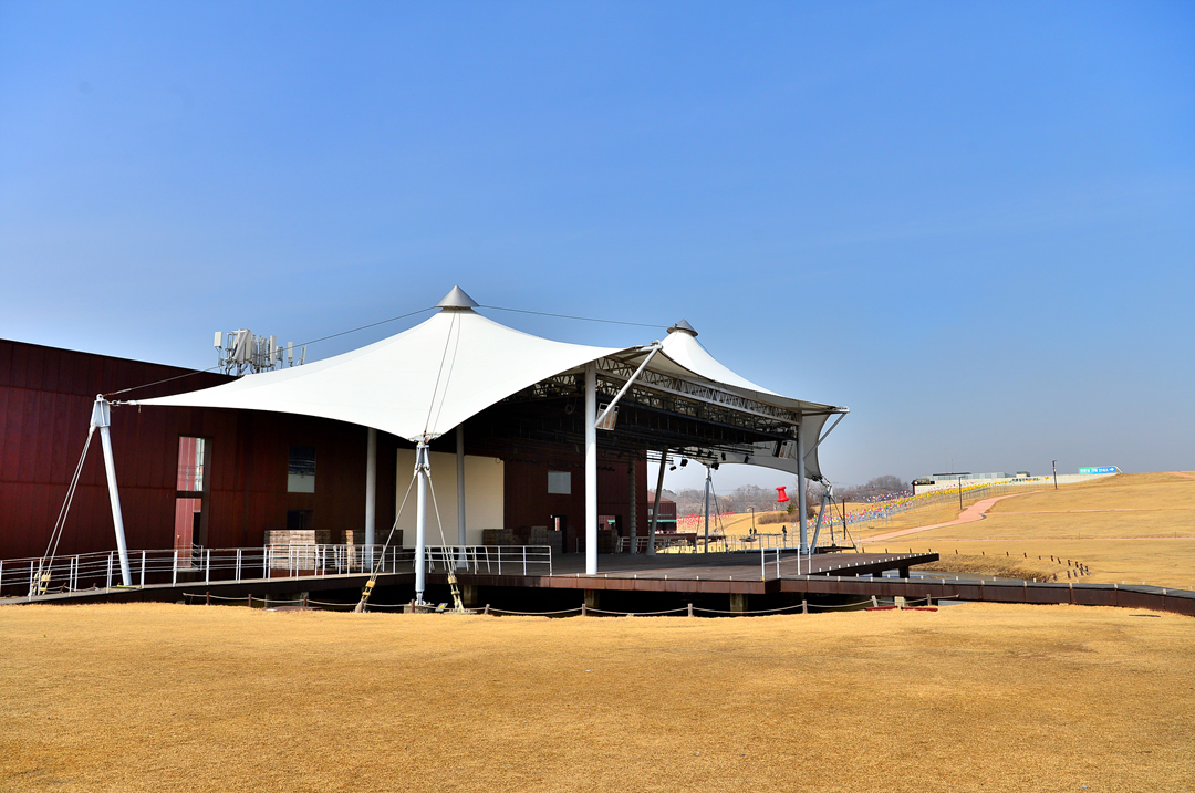 언덕을 바라보고 있는 야외 무대 모습이다.