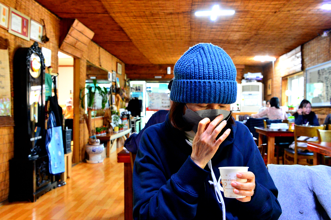 마스크를 벗어야 커피를 드실 수 있죠~~