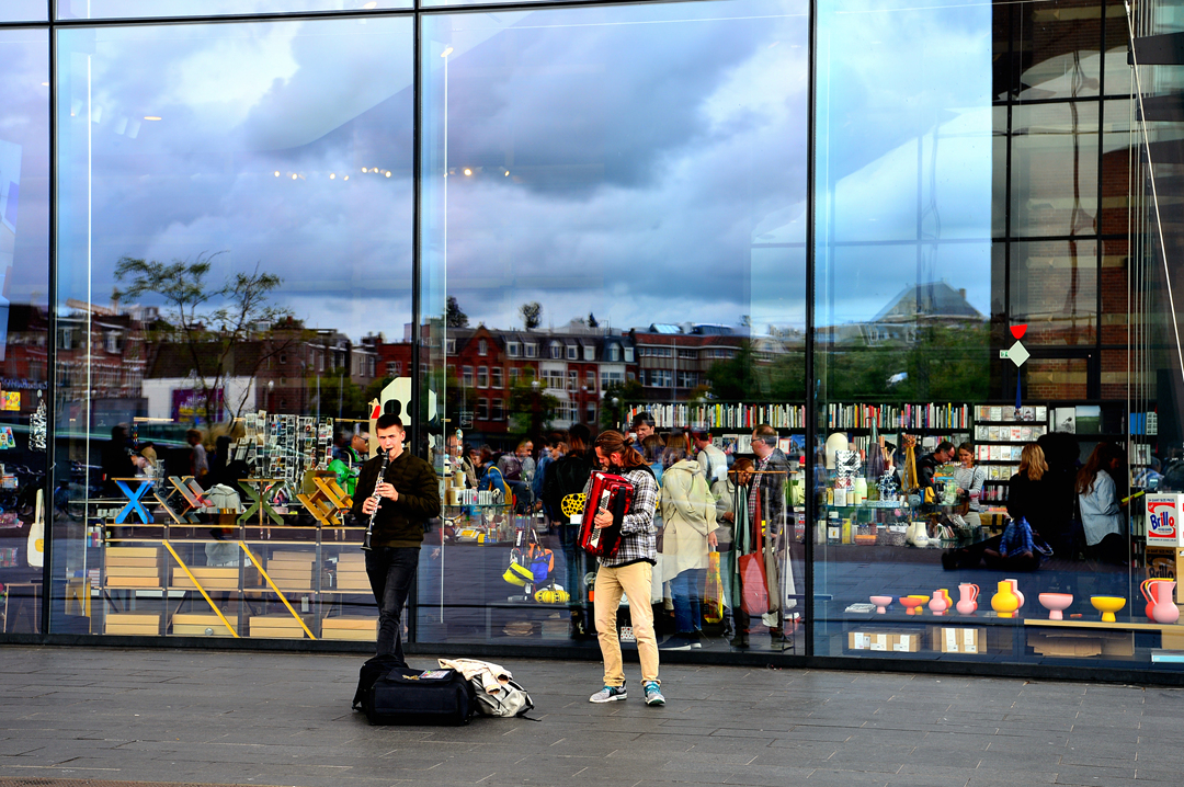 암스테르담 시립 미술관 앞의 거리 음악가 모습이다.