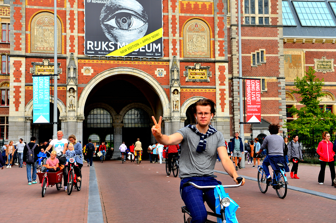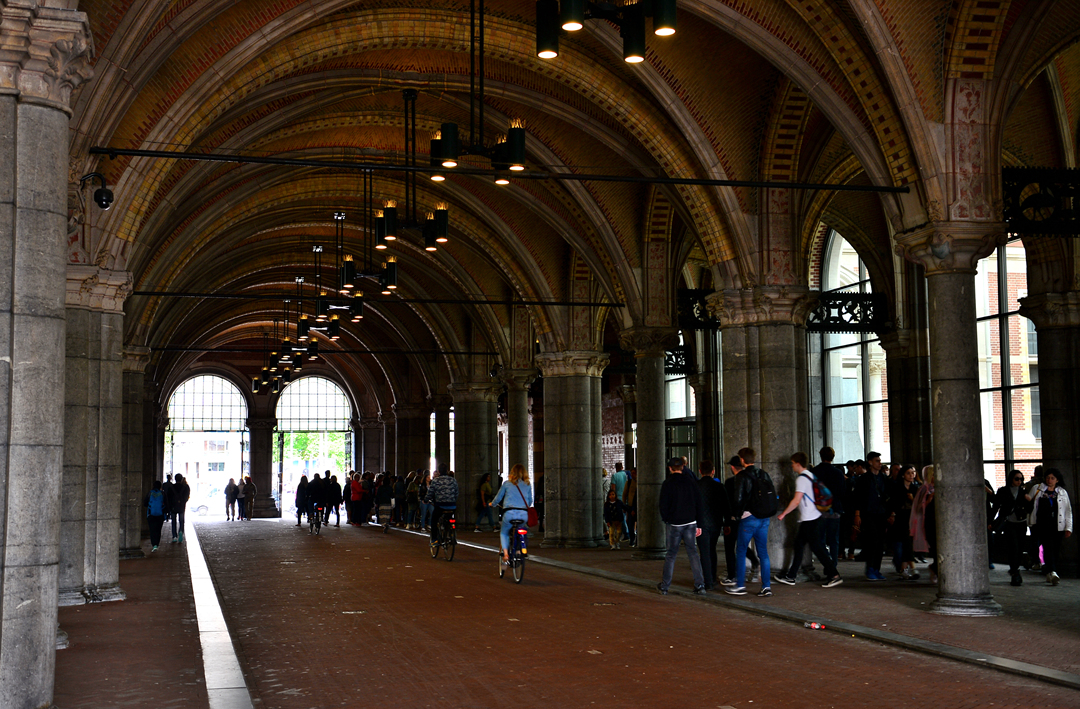 암스테르담 국립미술관 중앙에는 건물을 관통하는 넓은 자전거 전용도로와 보도가 있다.