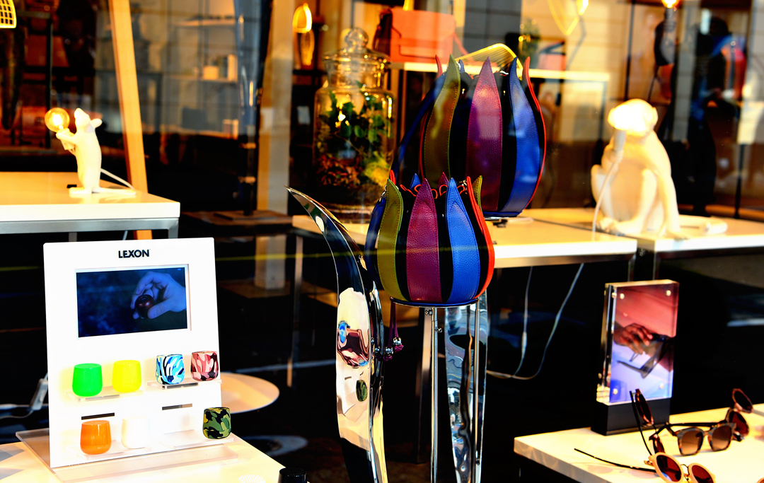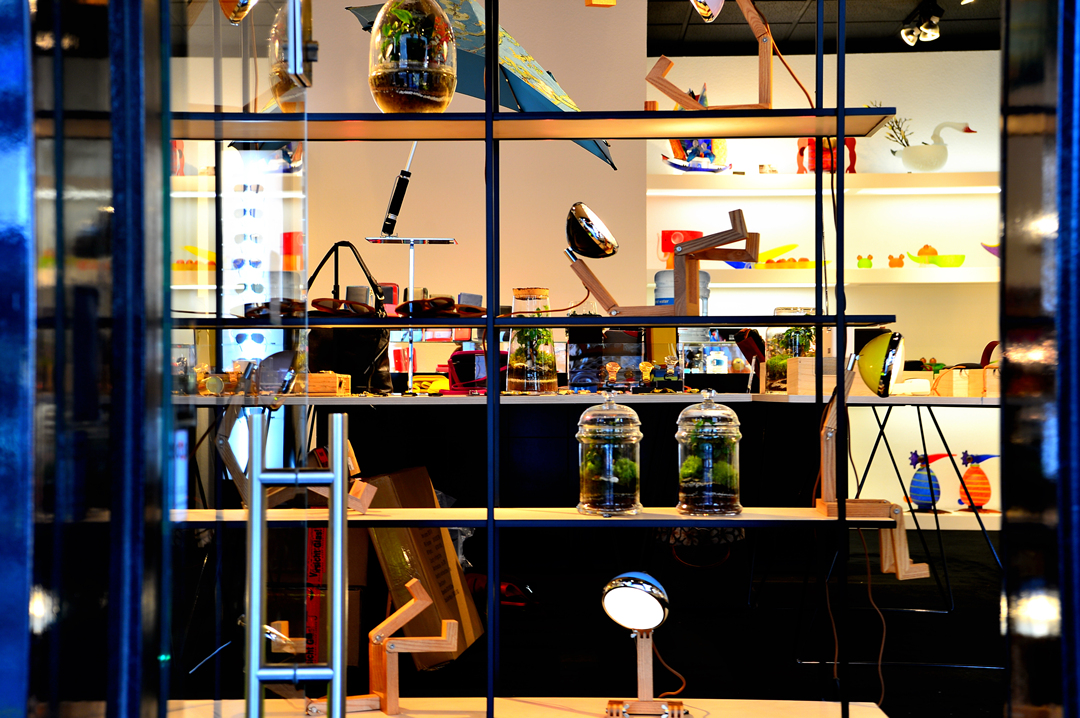 쇼윈도 안의 튤립 모양의 스탠드가 멋지다.