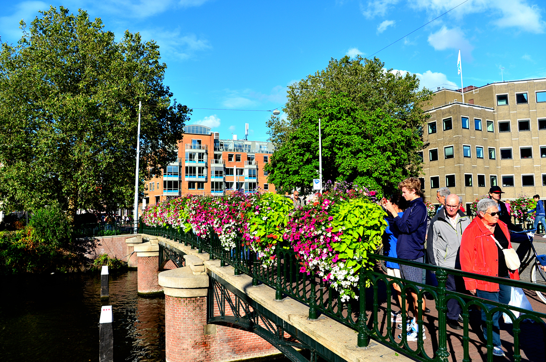 운하를 가로지르는 다리를 꽃으로 아름답게 장식해 놓았다.