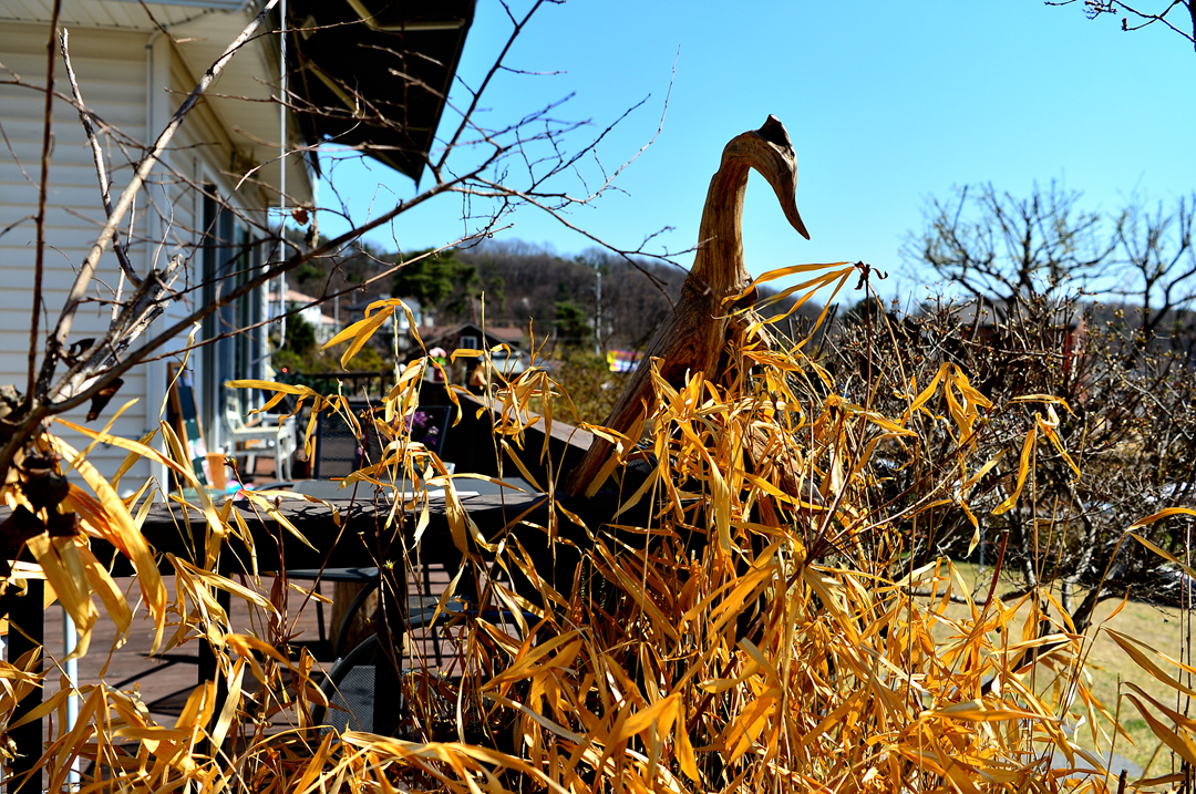 길 가 주택의 정원으로 들어섰다.