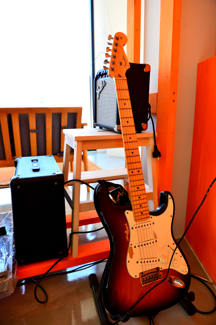 사진 촬영을 위한 작은 스튜디오도 마련해 놓았고, 그 옆에 기타도 놓여 있는데