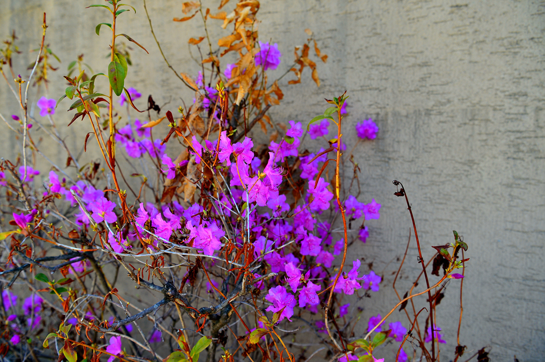 건물 아랫쪽에 진달래도 피어 있다.