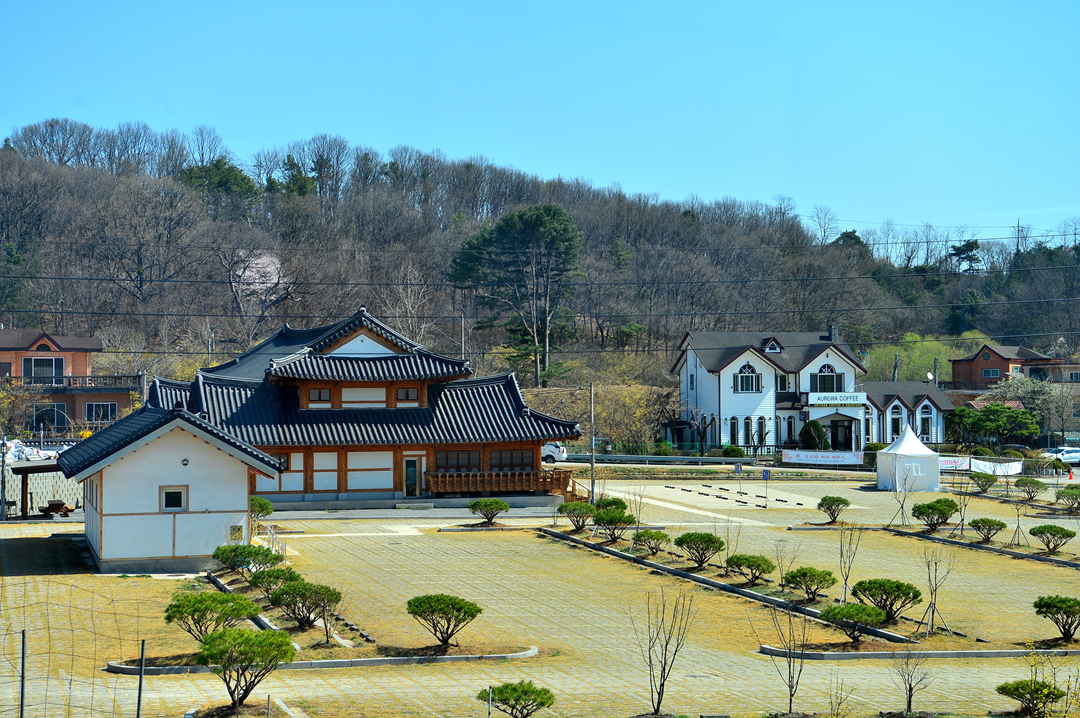 건너편 산자락 아래에는 번듯하게 잘 지어진 주택이 늘어서 있다.