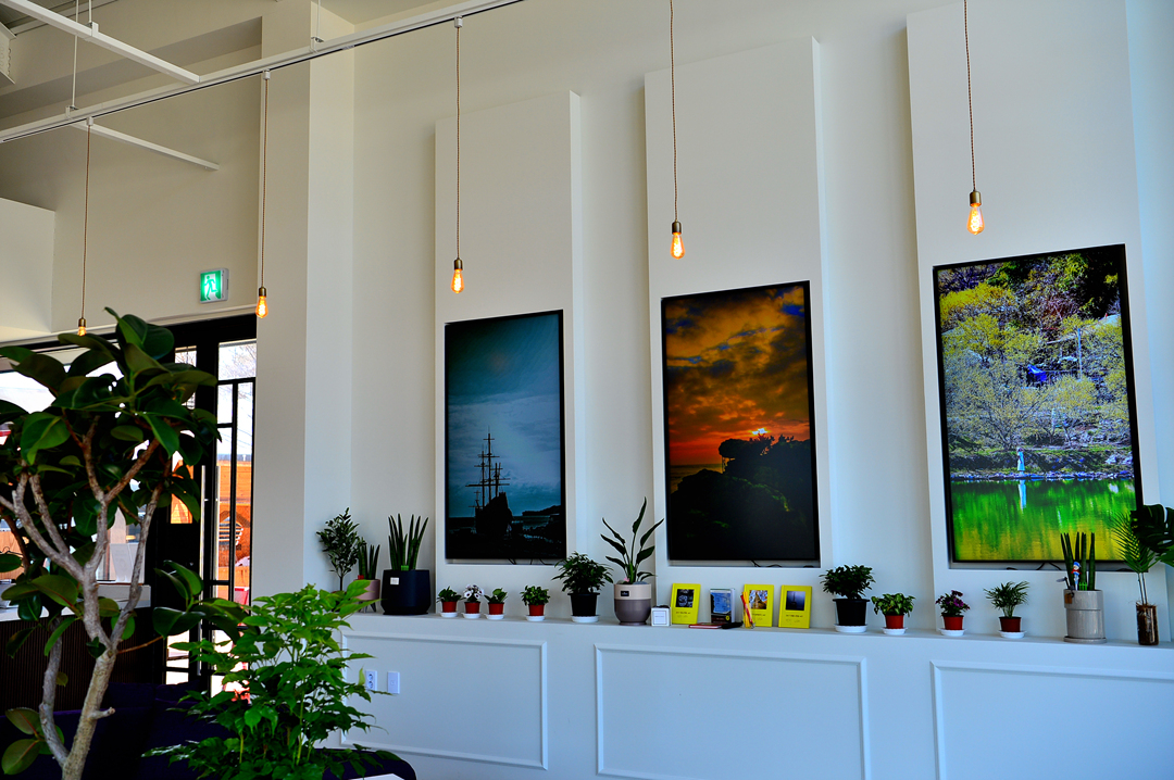 카페 안 벽면에 설치된 대형 패널은 주인장의 사진 작품들을 영상으로 계속 보여주는