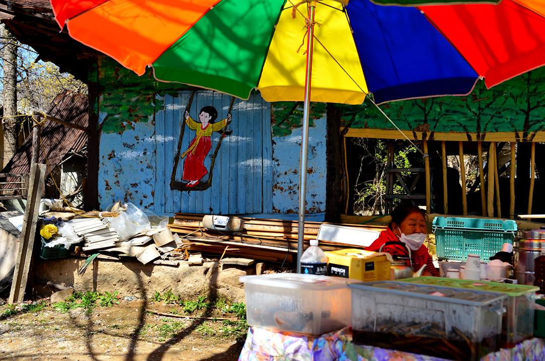 파라솔 아래에 좌판을 펼쳐놓은 어르신도 계신다.