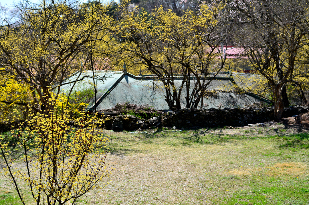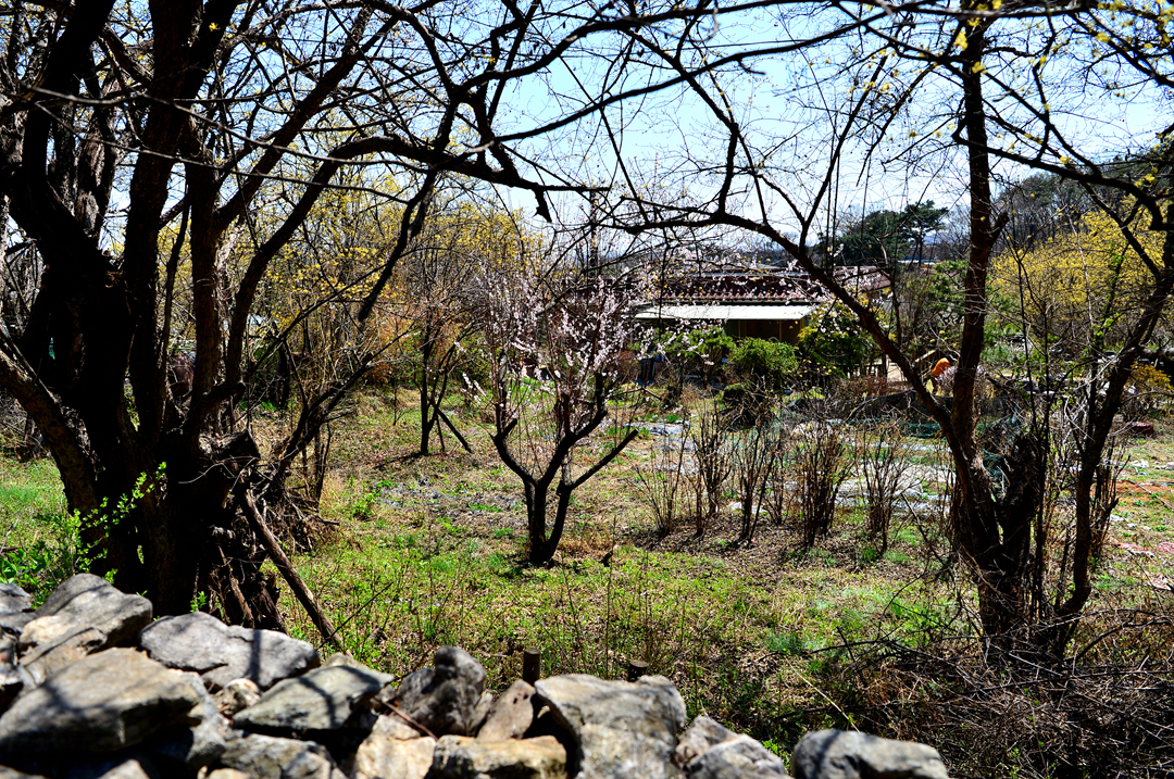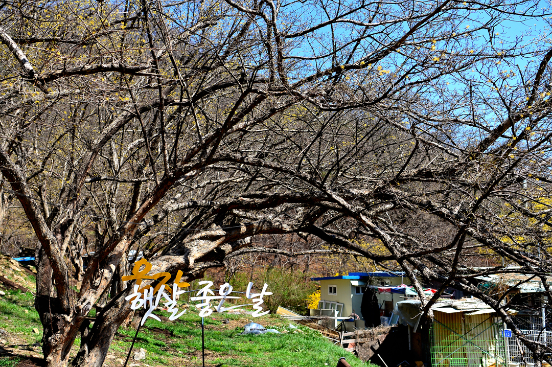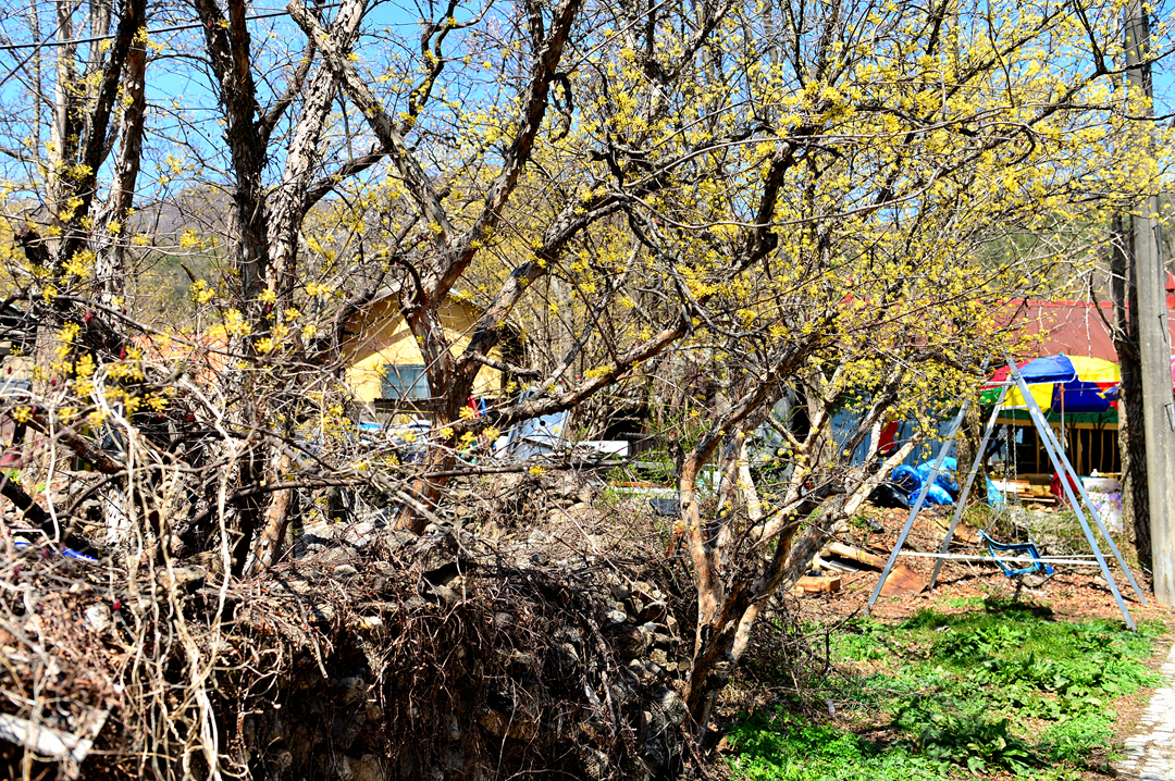 담장 위로는 제멋대로 자란 산수유 나무가 노란꽃을 내어 놓고~