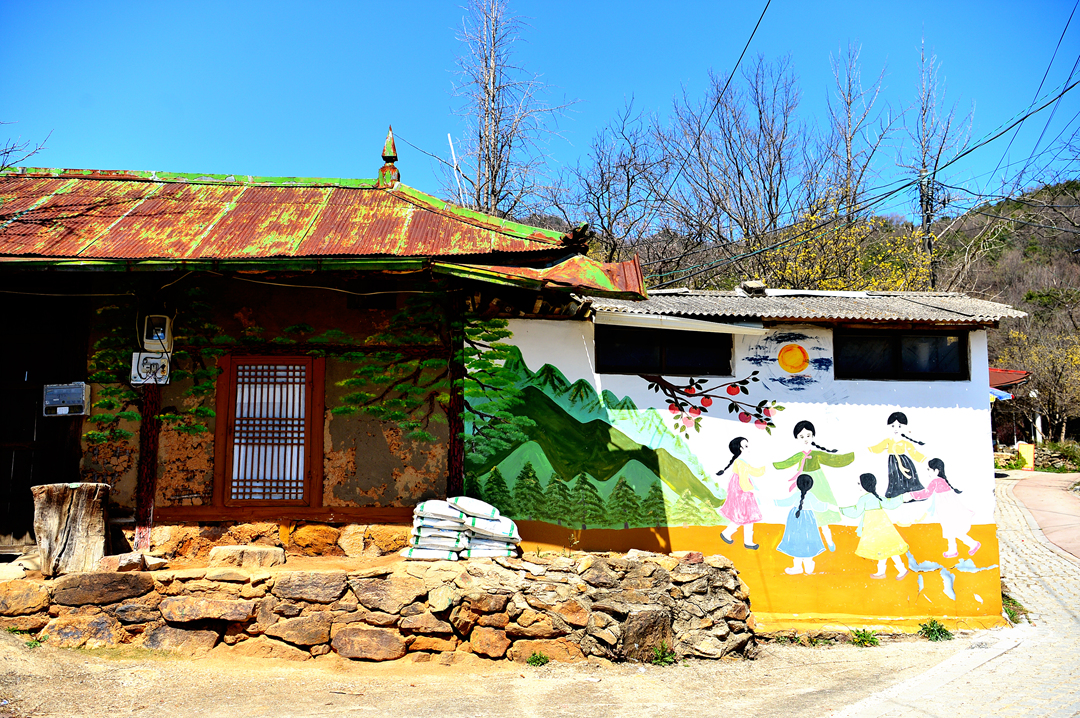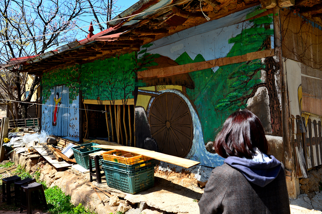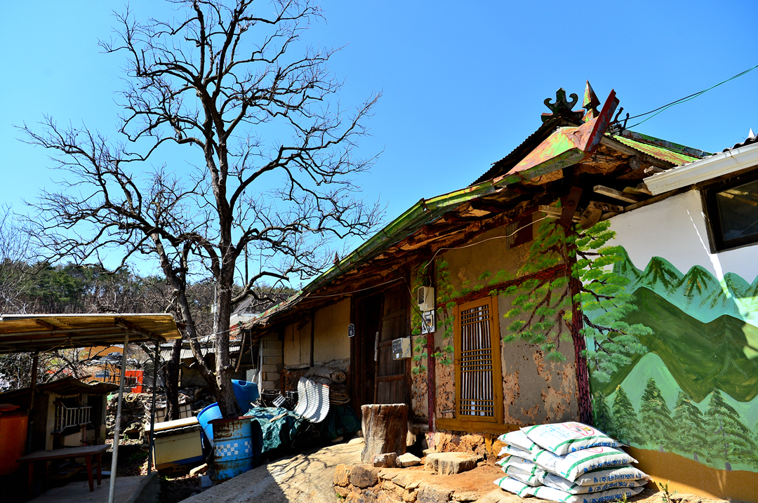 허름하기 이를데 없는 오래된 가옥들이 각종 화사한 벽화로 진하게 화장을 했다.