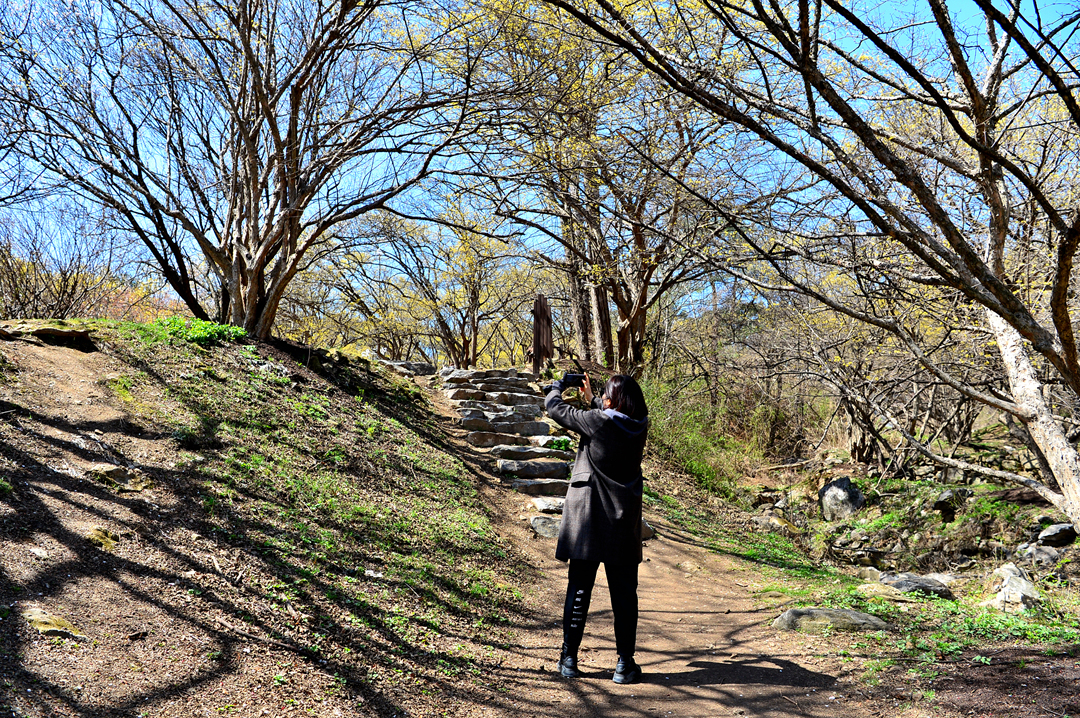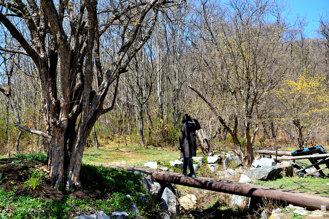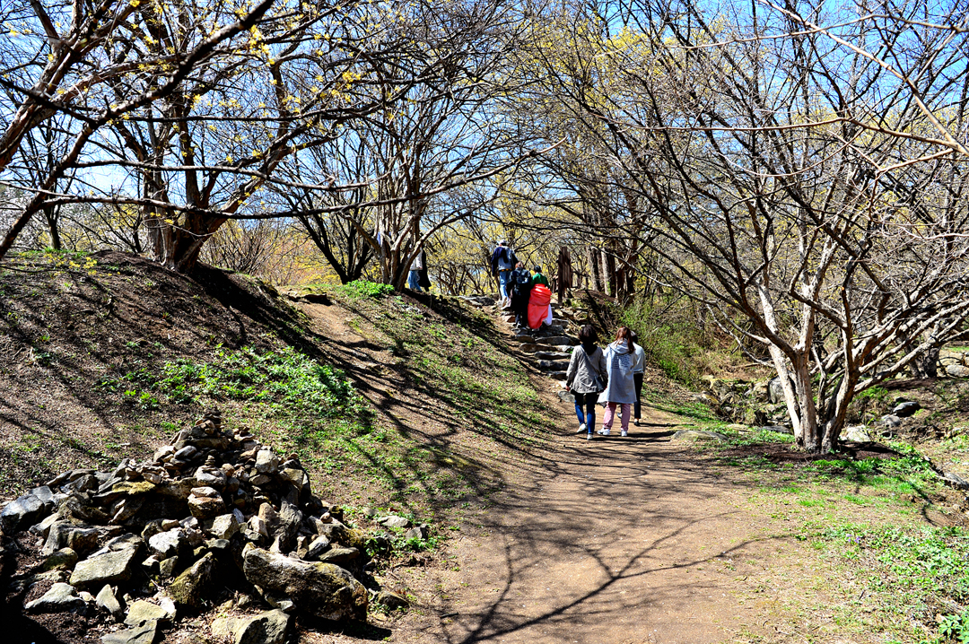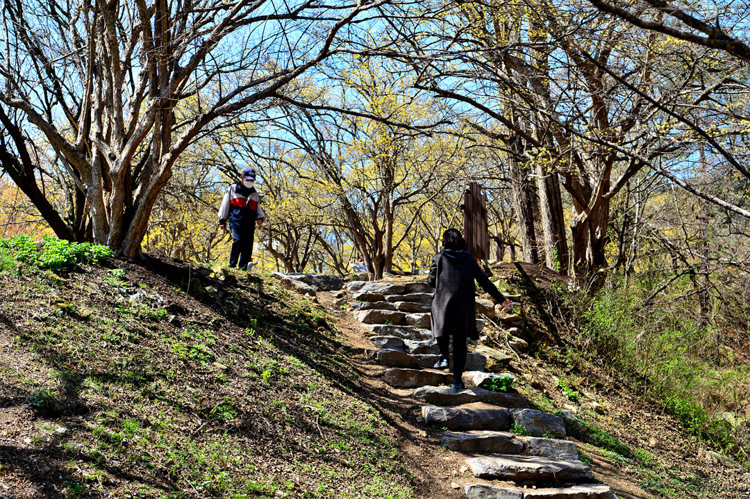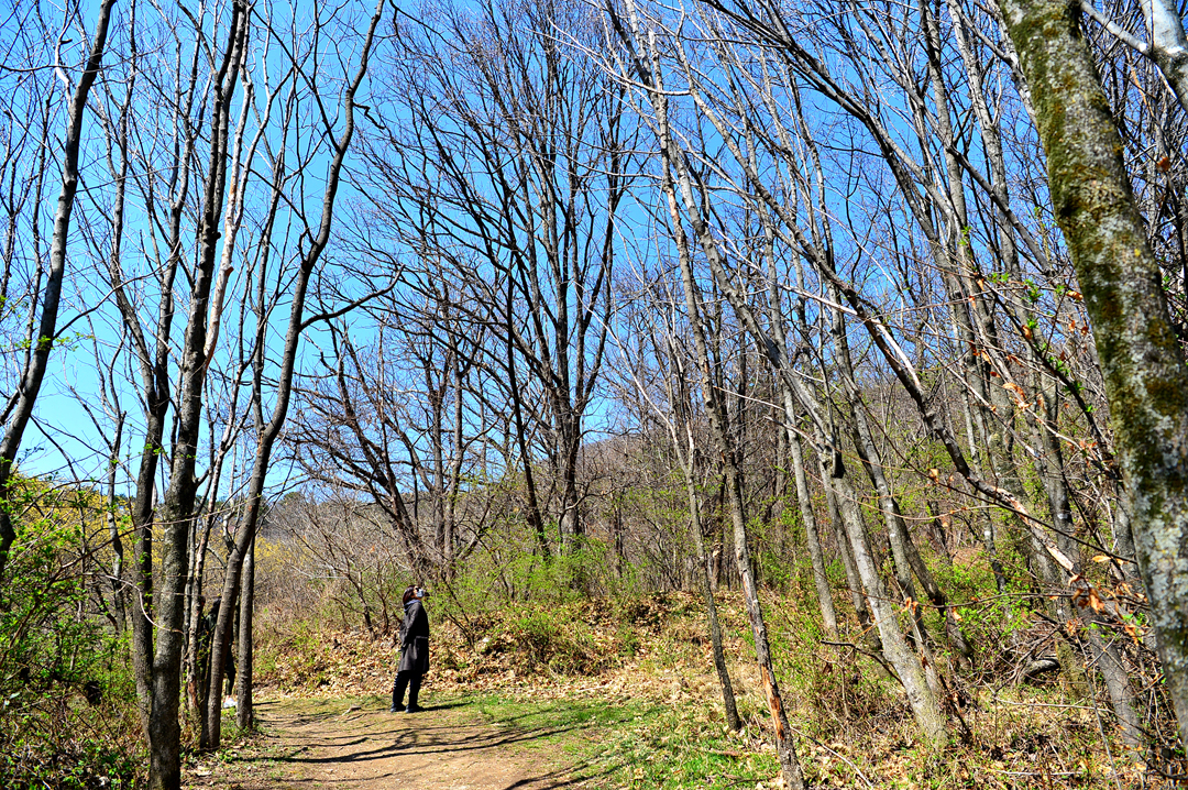 다리를 건너니 겨울잠에서 미처 깨어나지 못한 나무들이 앙상한 가지를 적나라하게 보여주고 있다.