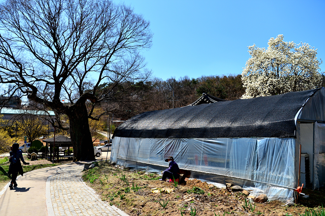 길가 비닐하우스 옆에서 밭을 매던 할머니가 반갑게 맞아 주신다.