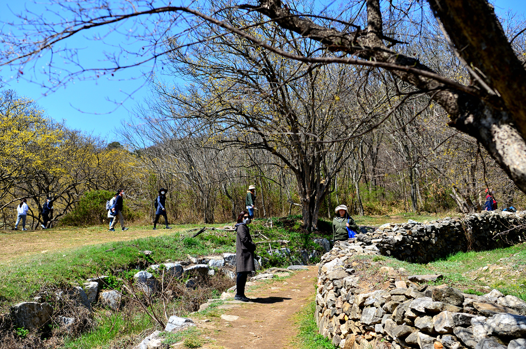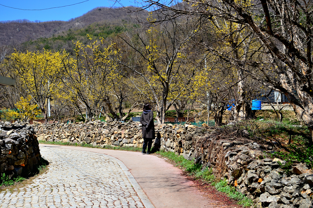 마을 뒤 돌담 길을 따라가면 많은 산수유 나무들이 있단다.