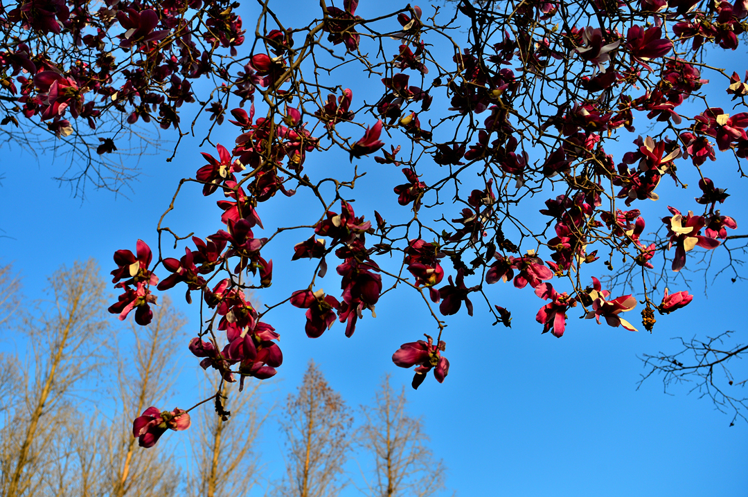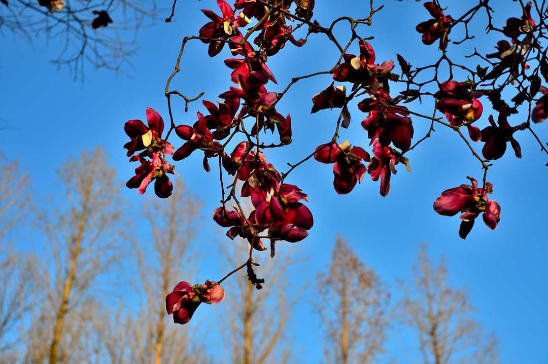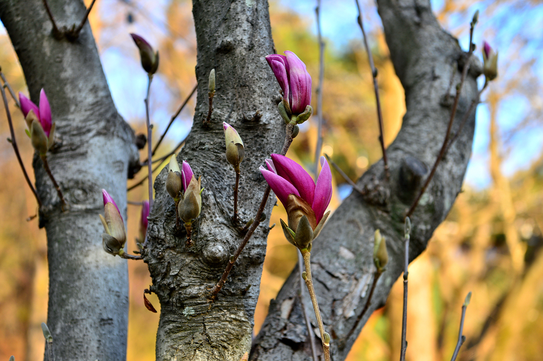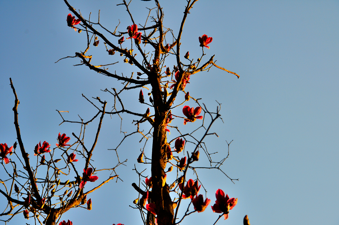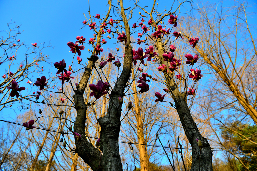 이 목련은 굵은 가지에서 꽃을 피웠네~