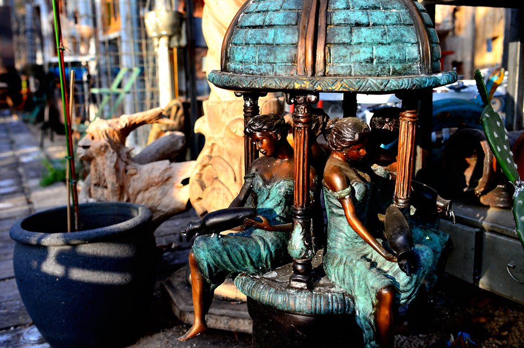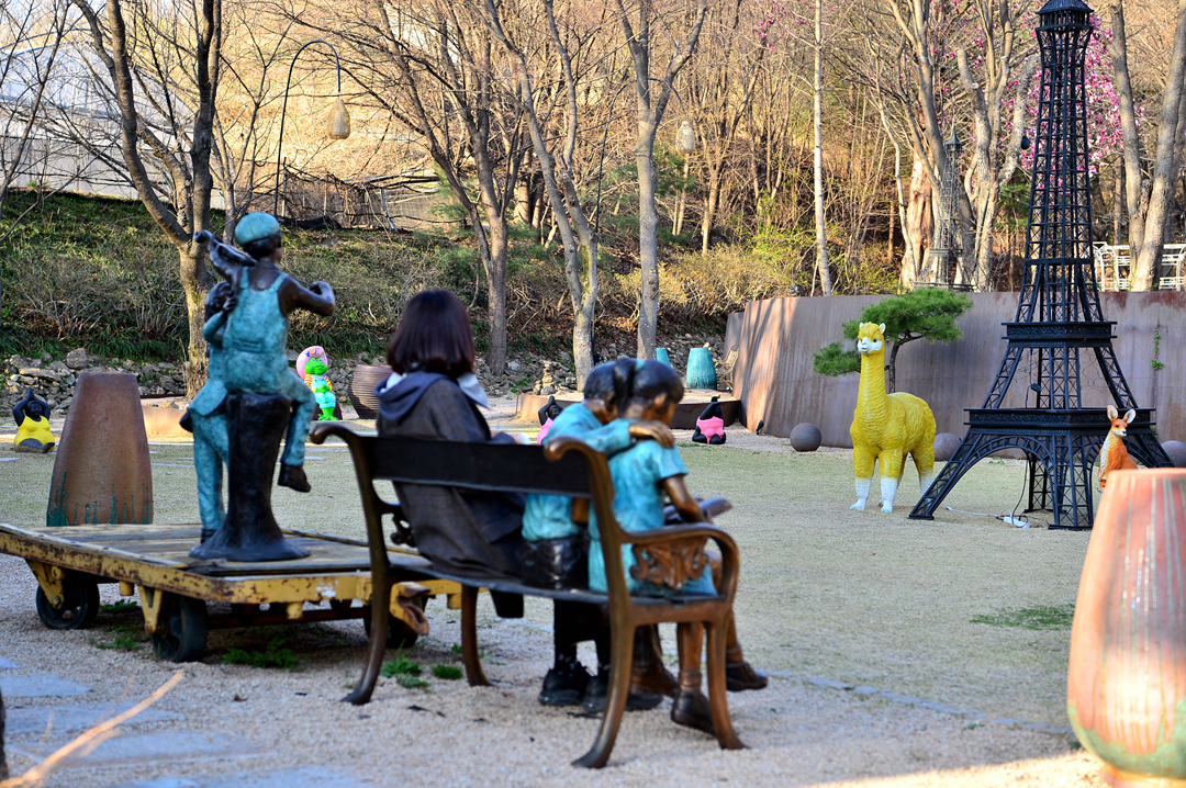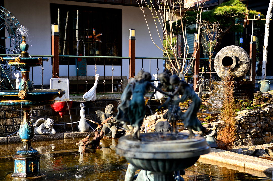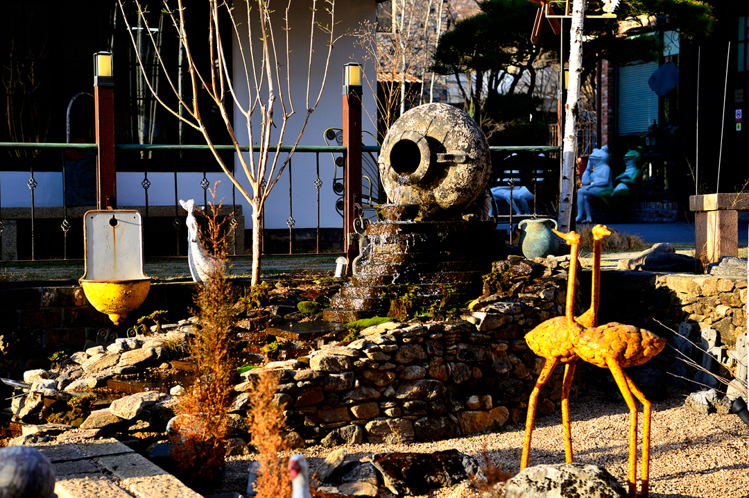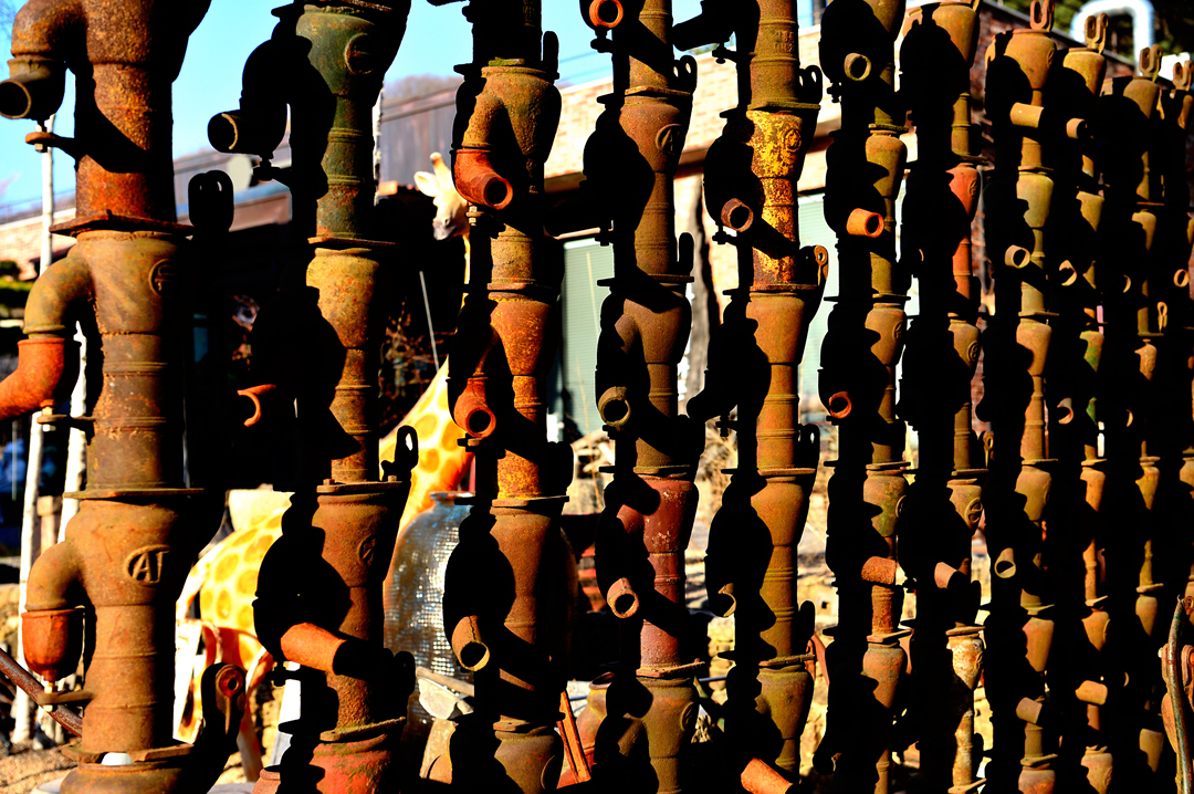 과거에 많이 사용했던 펌프를 잔뜩 모아서 조형물을 만들어 놓았다.
