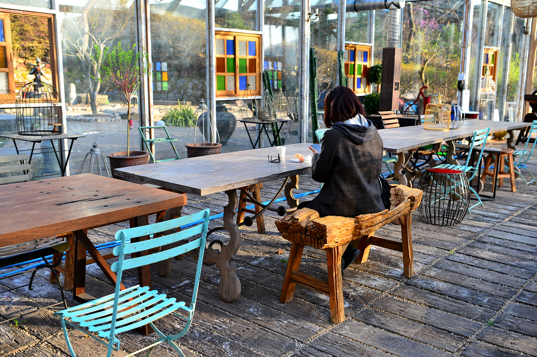 잠시 쉬어간 온실 같은 쉼터 내부 모습이다.