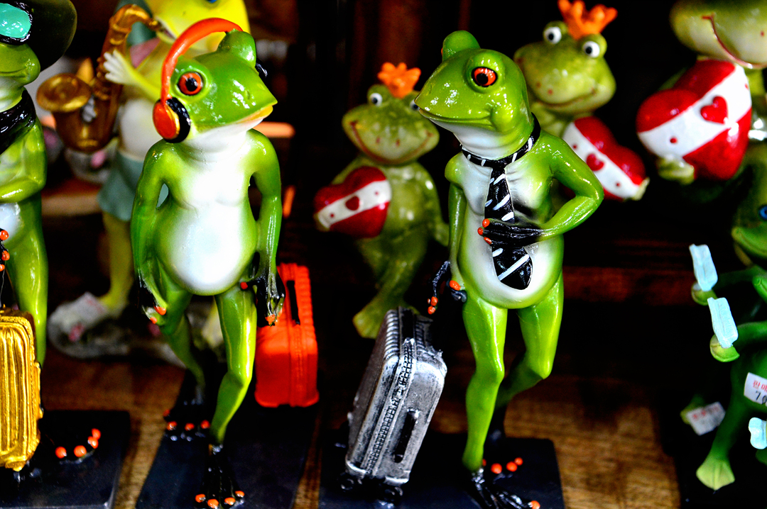 귀엽게 생긴 청개구리들이 한껏 모양을 내고 있는데