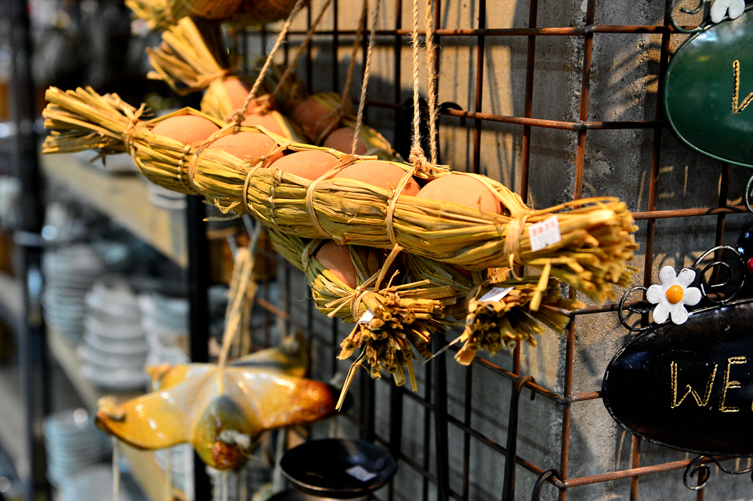 짚으로 잘 싸놓은 꾸러미 달걀도 있다.