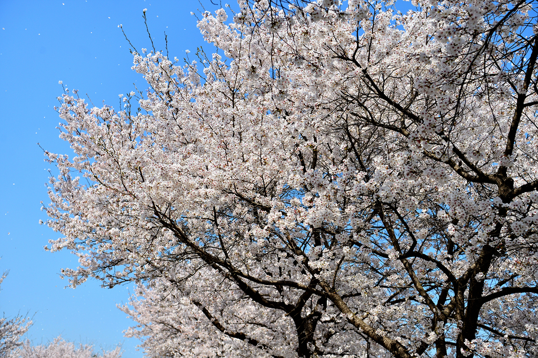 바람에 흩날리는 벚꽃이 흡사 한 겨울 눈 내리는 듯하다.