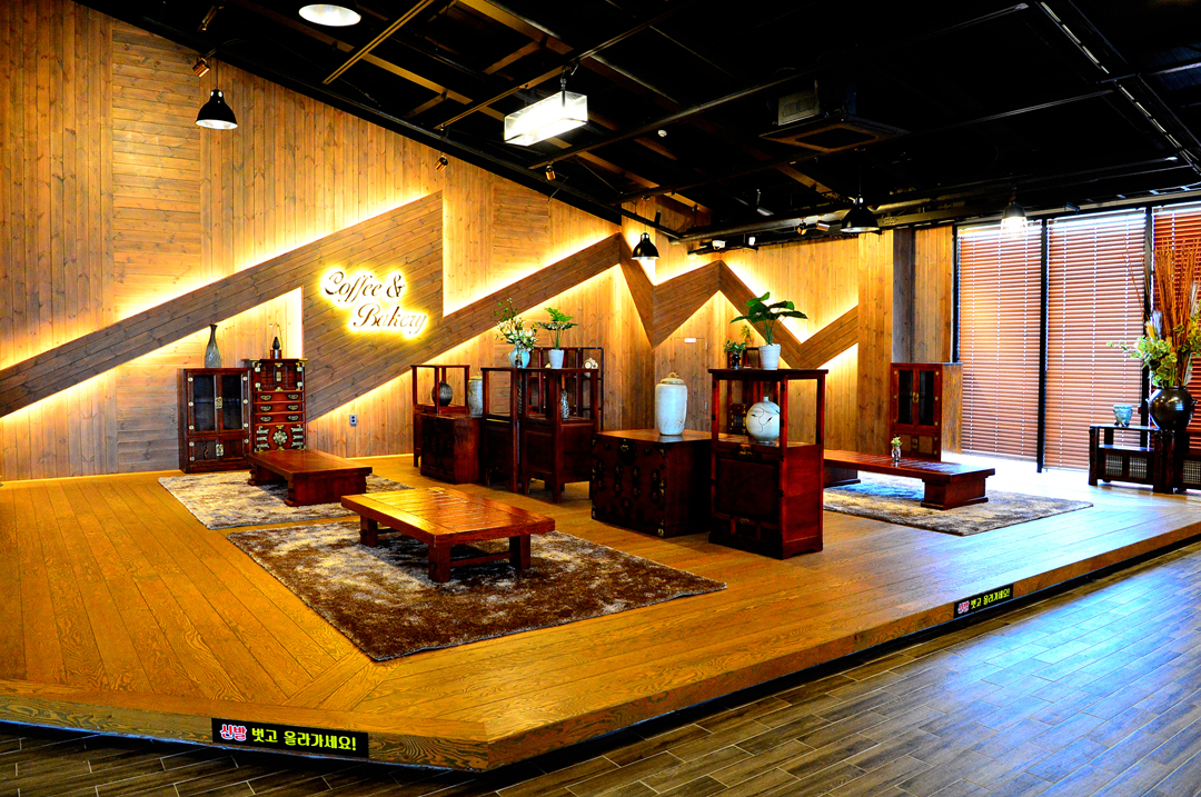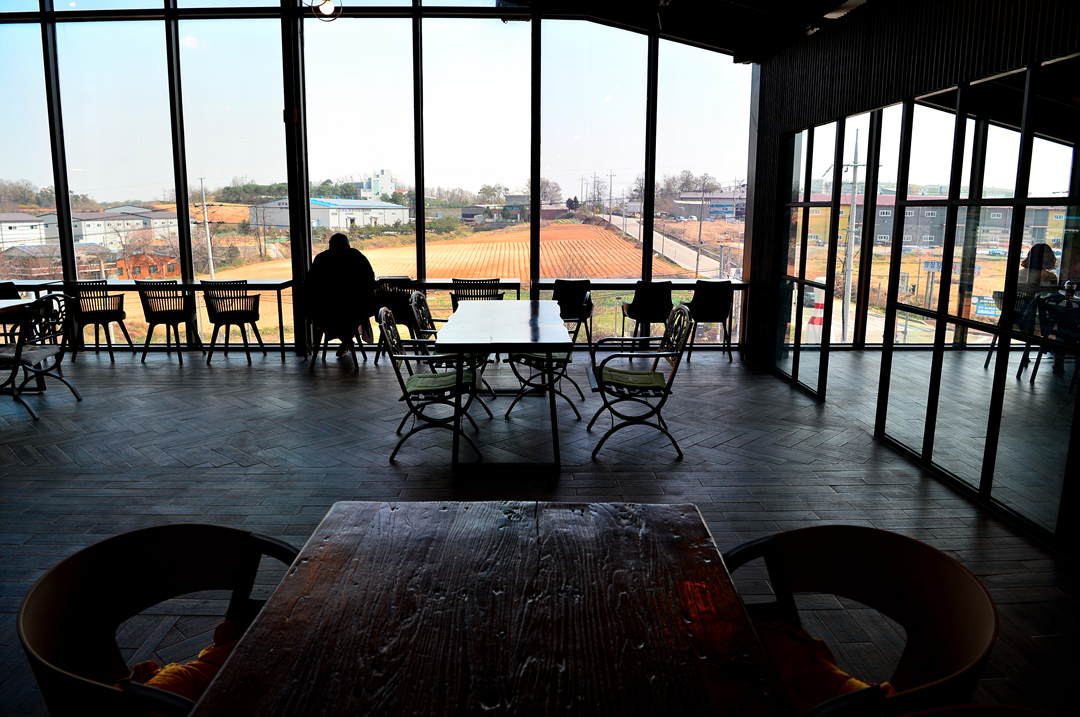 위층 모습인데 대형 창으로는 이천의 시골 풍경이 실내 깊숙이 파고 들어온다.
