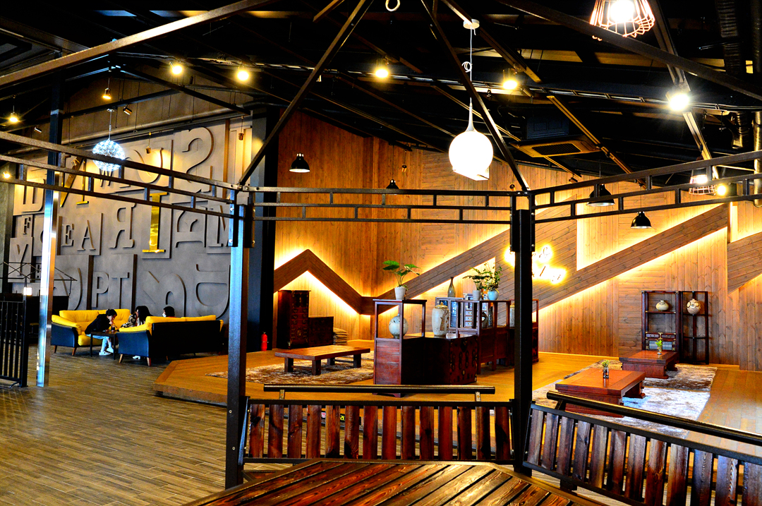 카페 내부의 중앙부는 오픈되어 있는 중층형으로 되어 있어서