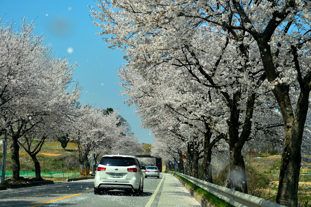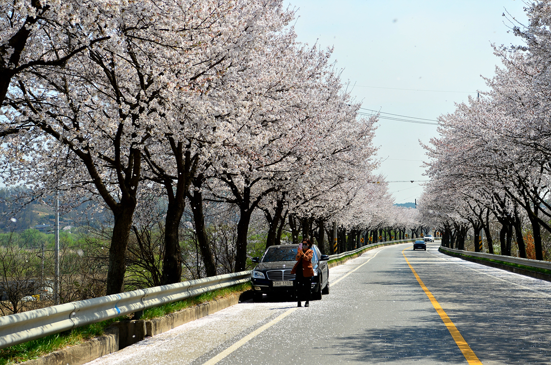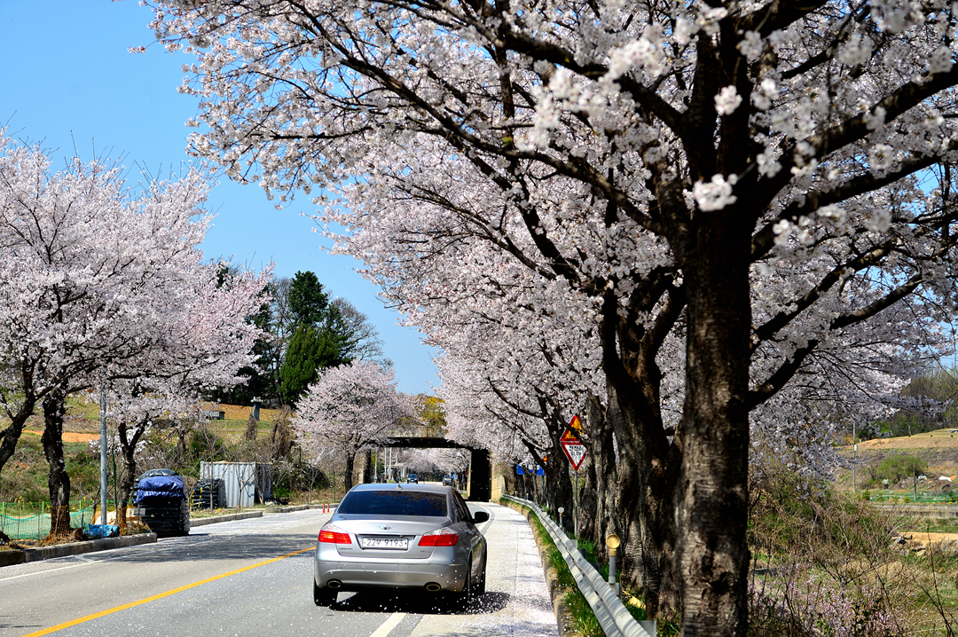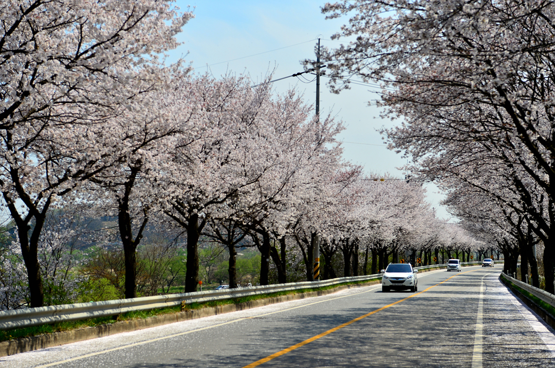 매운탕집을 나서서 이천으로 향하는 길목으로 흥천 남한강 벚꽃길이 계속 이어진다.