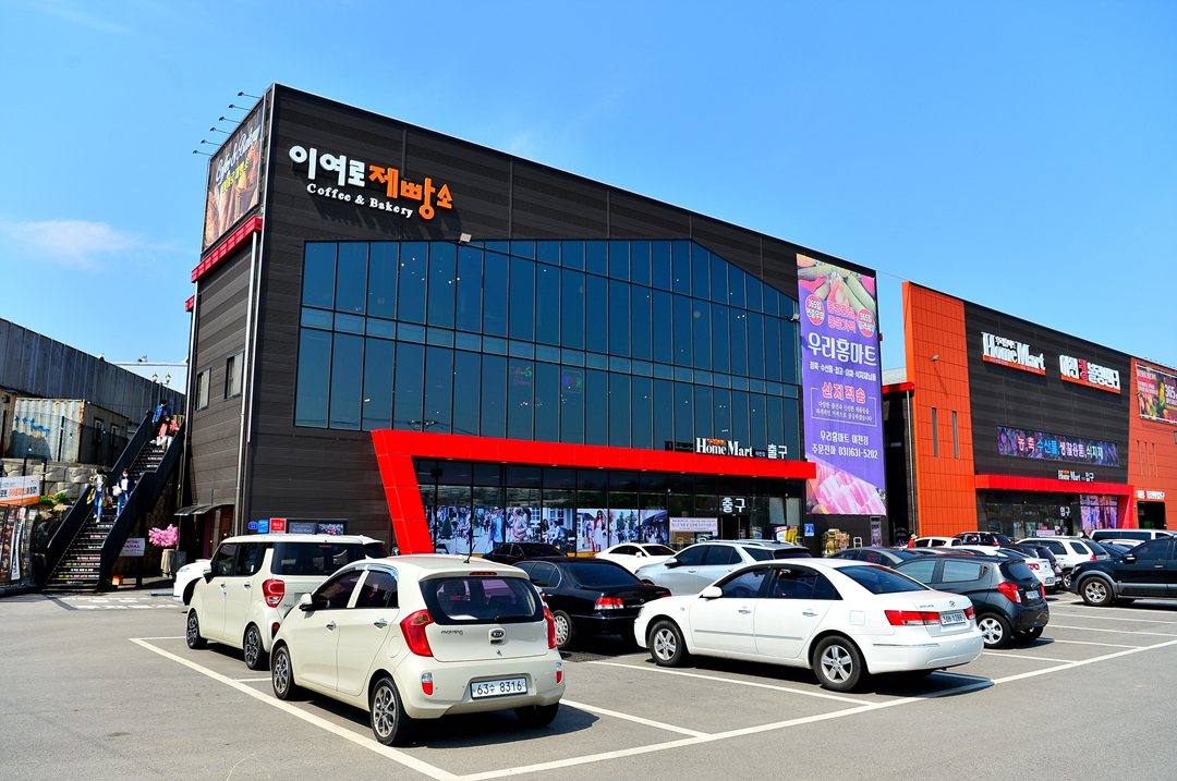 도로변으로 대형 볼링장이 나타나고 이어서 마트와 함께 이여로 제빵소라는 간판이 보이고,