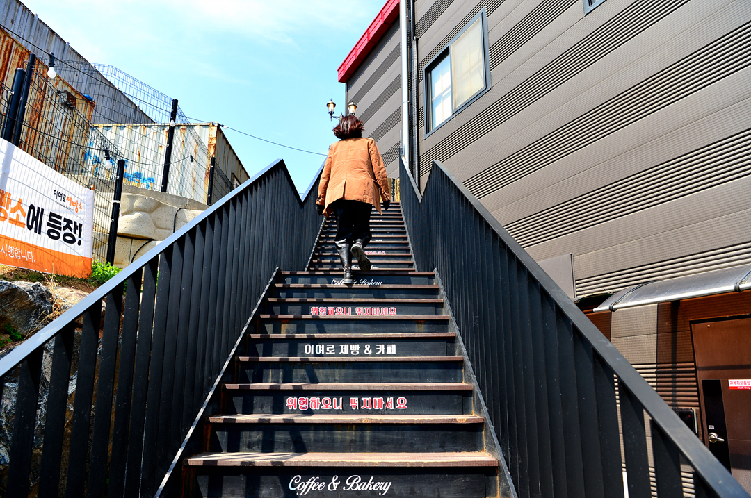 건물의 제일 좌측에 마련된 카페로 이어지는 철제 계단이다.
