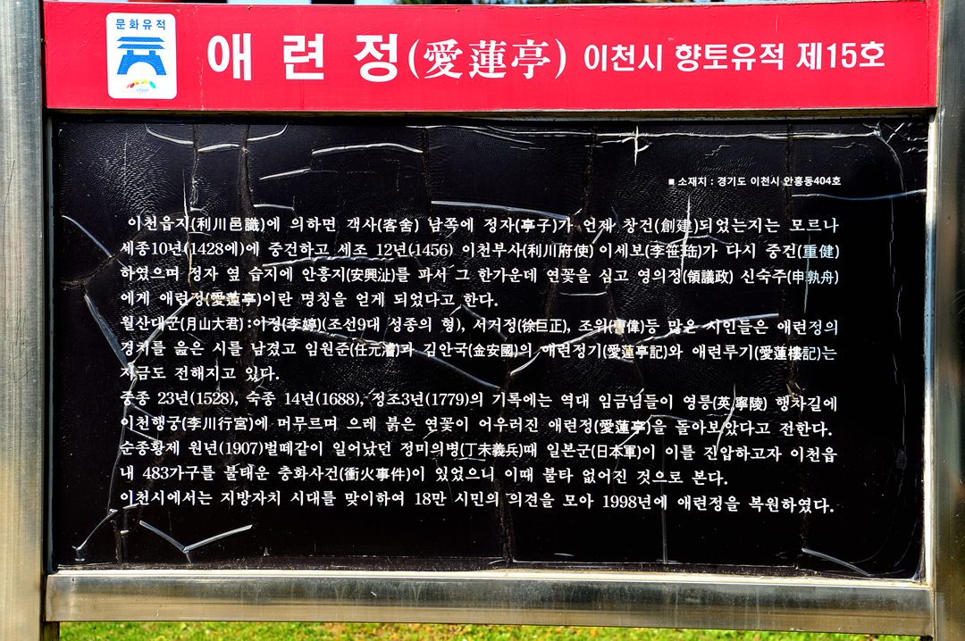 이여로 제빵소를 나서서 찾아간 곳은 이천 시내의 작은 호수 안흥지 安興池다.