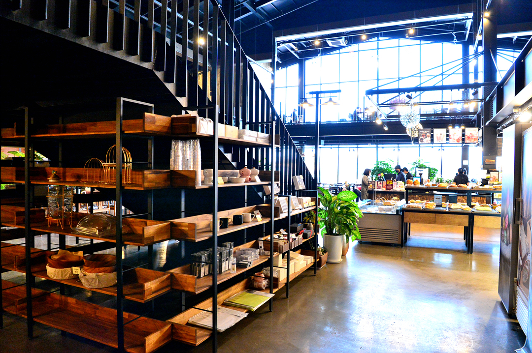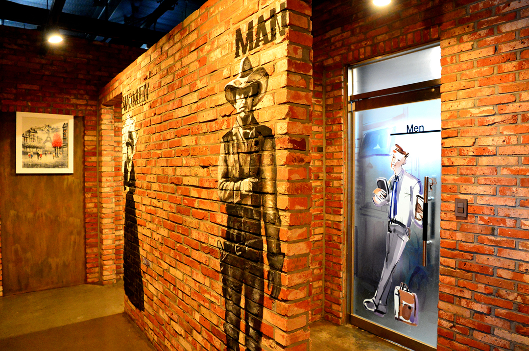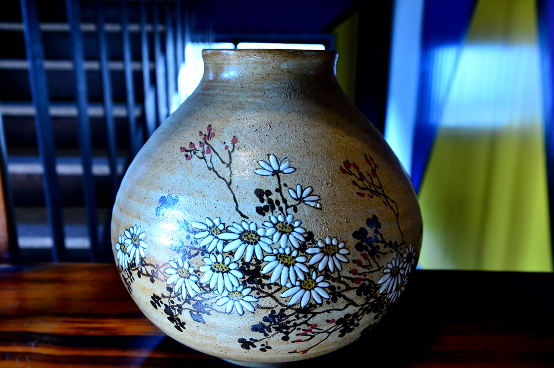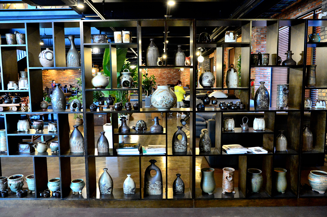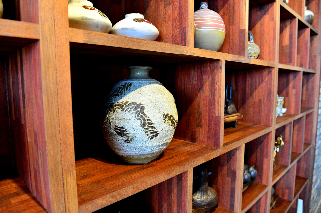 도자기의 고장답게 다양한 형태의 도자기를 파티션으로 이용한 모습이다.