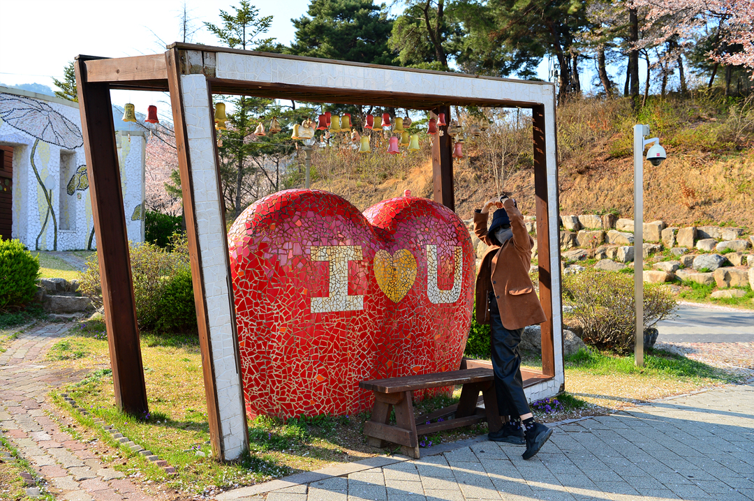 주차장 부근 세라피아 앞에 설치해 놓은 조형물들 모습이다.